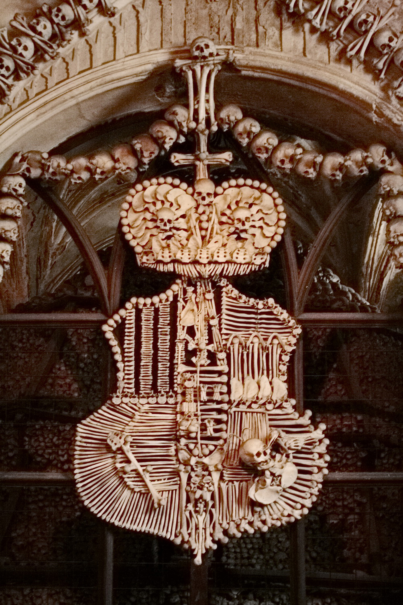 Im 15. Jahrhundert wurde dann eine ordentliche Kirche auf dem Gelände errichtet und im Lauf der Jahre etliche Überreste ausgegraben – man berichtet von etwa 40.000 Toten, deren Knochen systematisch im Beinhaus gelagert wurden. Das i-Tüpfelchen wurde allerdings erst im 19. Jahrhundert erschaffen, als ein Holzschnitzer für die Innenausstattung des Beinhauses beauftragt wurde. Jener nutzte die Knochen und Schädel von etwa 10.000 Skeletten und baute die Inneineinrichtung des bis heute fantastisch anzusehenden Beinhauses.