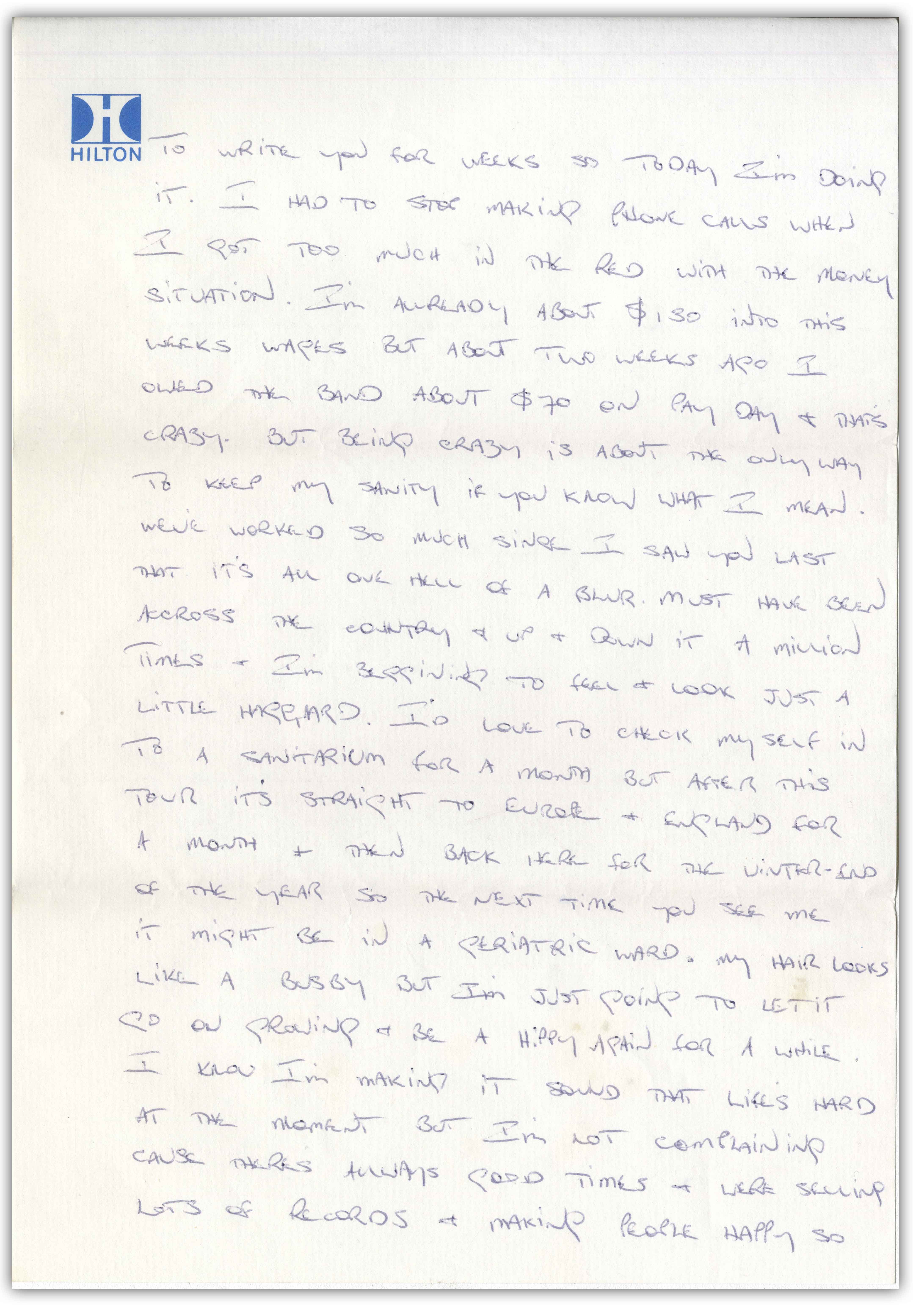 Ich weiß nicht, ob ich es dir gesagt habe, aber ich habe ihn vor ein paar Wochen angerufen, um zu sehen, ob er für Phil einspringen würde. Denn Phil hatte einen kleinen Nervenzusammenbruch und musste viel Zeit beim Psychiater verbringen. Es war echt schlimm, aber er kam schnell genug drüber weg, um die Band nicht aufzuregen. Wir mussten ihn für eine Weile mit Samthandschuhen anfassen, aber jetzt geht es ihm gut. […]