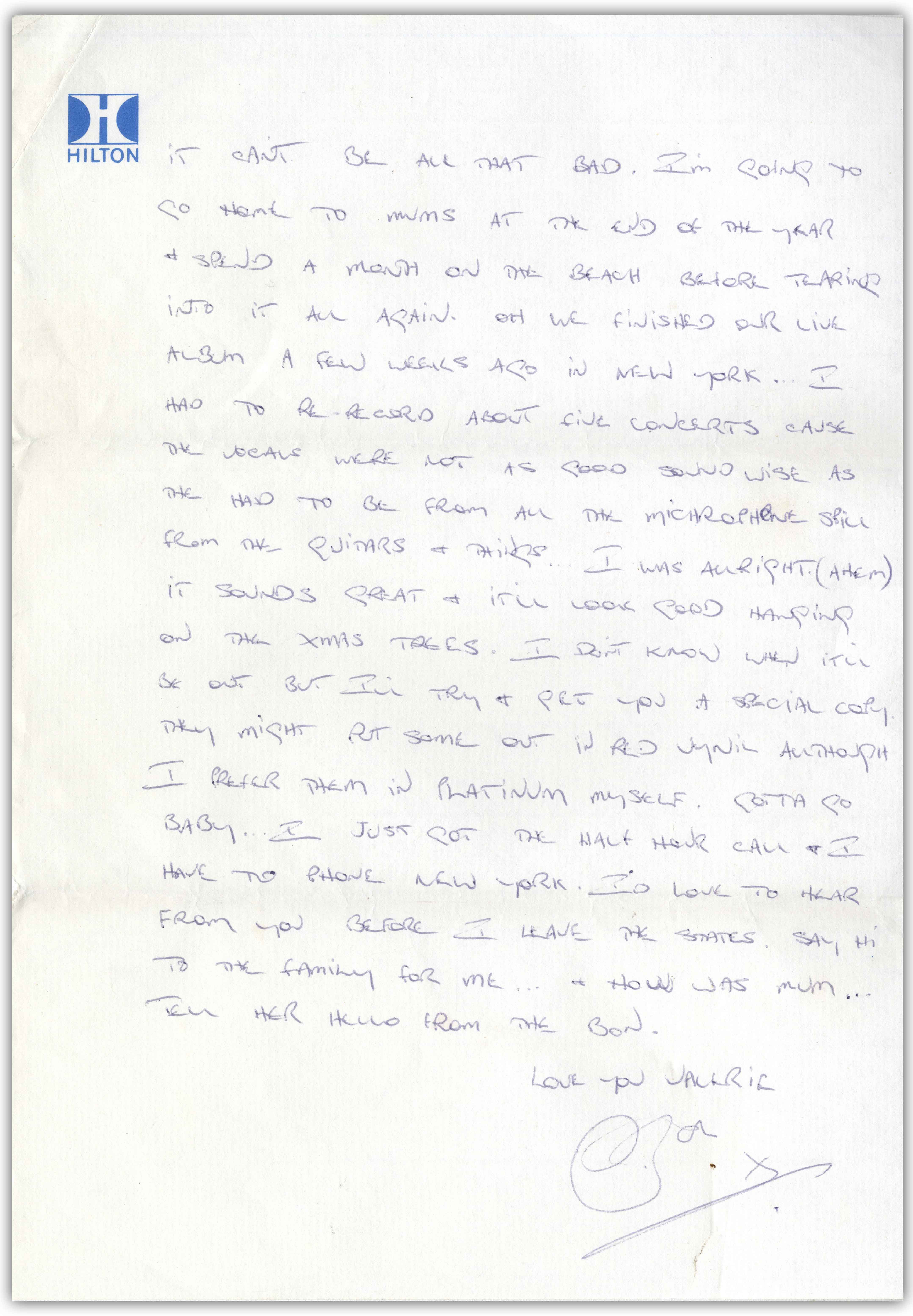 Teile des Briefes von ex-AC/DC-Sänger Bon Scott lesen sich wie folgt: