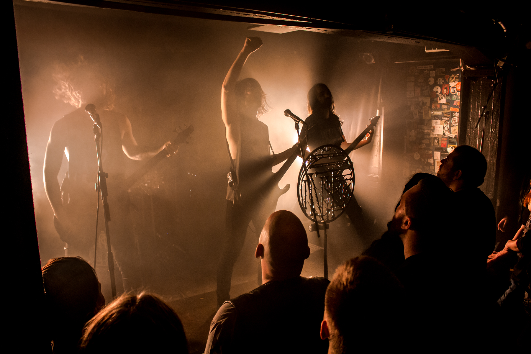 Als aber der Opener ‚Aufbruch‘ vom brandneuen FINISTERRE ausbricht und Nikita aus voller Kehle den dramaturgischen Höhepunkt singt, wackelt der Raum vor Gänsehaut. Selbst ihr ehemaliger Gitarrist Sascha Rissling – der jetzt als Stagemanager und Backliner für den reibungslosen Ablauf der ersten Shows sorgt – kann nur ein glückliches Glucksen abgeben. Was sich hier schon anbahnt: Das Kartenspiel Schnauz, das die gesamte Tour tagtäglich begleiten wird.