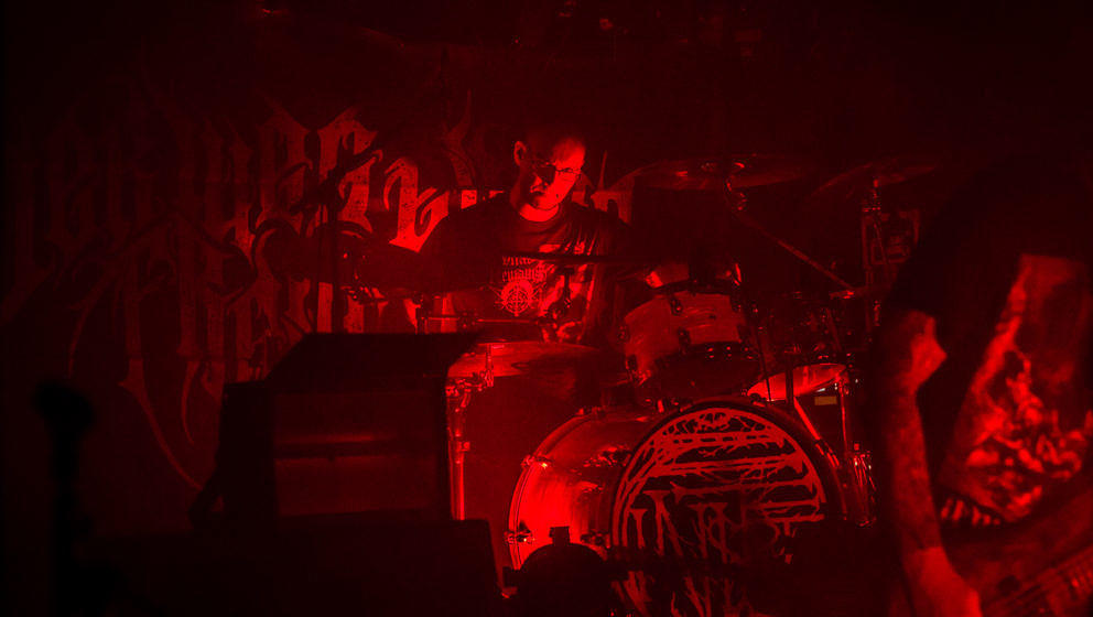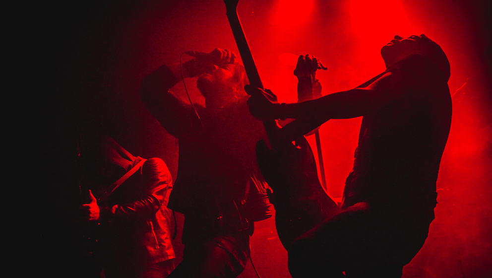 Regarde Les Hommes Tomber (RLHT) prügeln ein doomiges Black Metal/Sludge-Gewitter in den düsteren Klub, bevor Der Weg Einer Freiheit auf den Punkt eingespielt ein atemberaubend inszeniertes Set vorstellen. Bei zwei Neuzugängen war das nicht unbedingt klar, aber Bassist Nico Ziska und Gitarrist Nicolas Rausch erweisen sich als extreme Glücksgriffe.