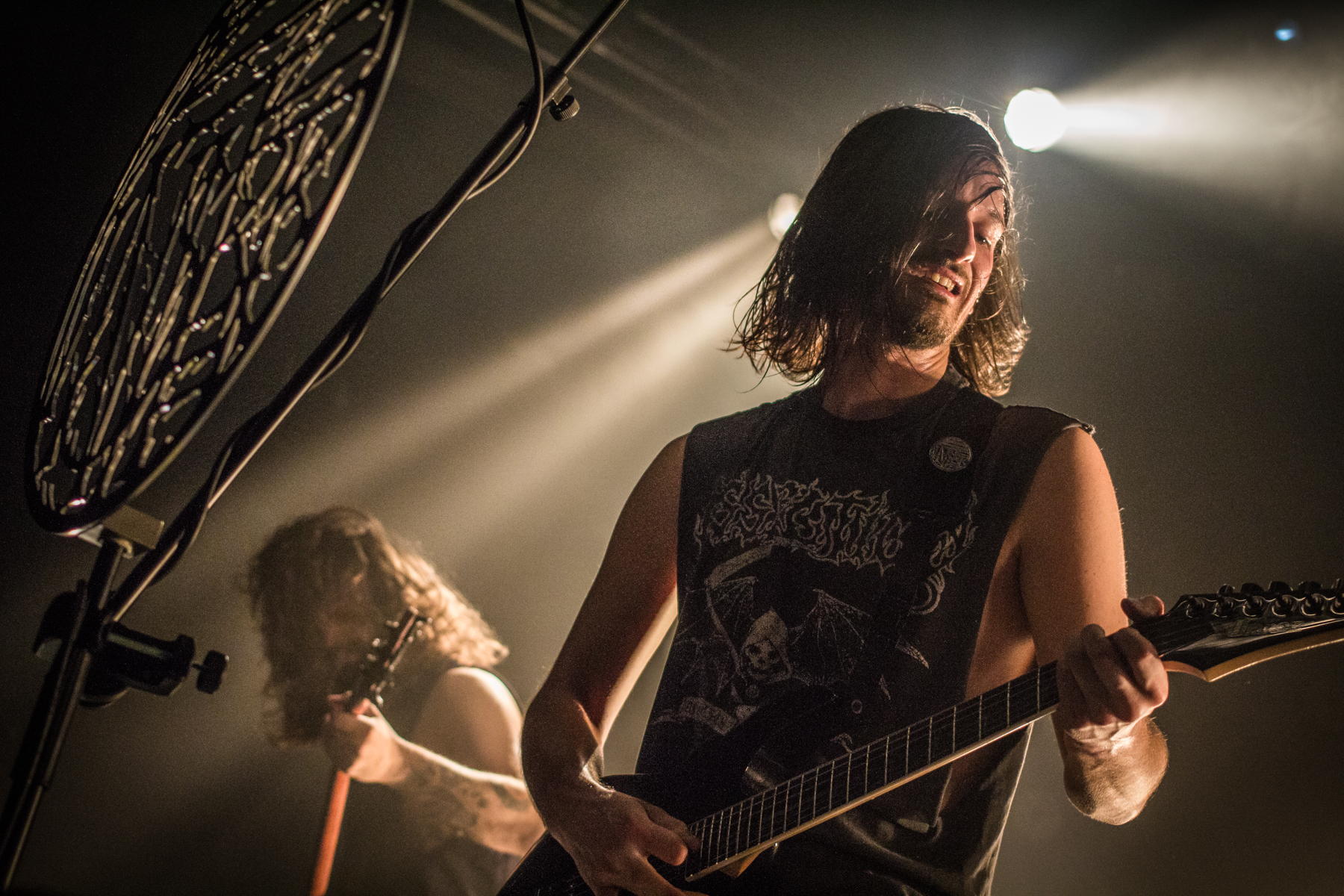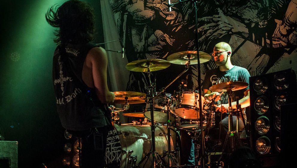 Den Busstellplatz zuparkende Autos, träge Polizei und eine Crew, die Soundcheck-Zeiten nicht auf dem Schirm hat, legen ein paar Findlinge in den Weg. Vertröstet wird der Tourtross in der halbschiefen Halle dafür mit vegetarischer Kichererbsen-Paella. Ein Traum. In letzter Sekunde und mit spontan verschobenem Einlass geht dann doch alles über die Bühne. Schönste Sache an spanischen Black Metal-Fans mal wieder: Wie sie im Hüftschwung tanzend zu heftigsten Parts von ‚Skepsis Part II‘ träumen.