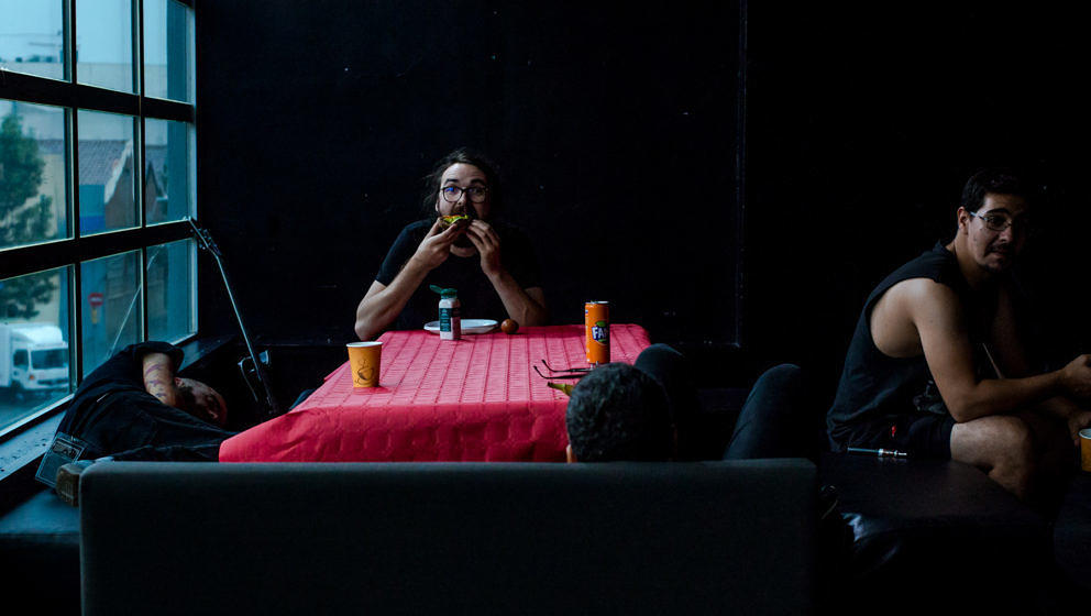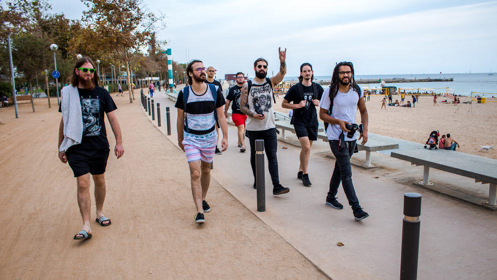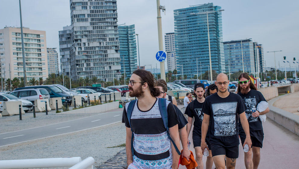 Wtf. Gerade noch in der Sonne Südfrankreichs, jetzt am Marbella Beach von Barcelona City stranden. Besser kann es gar nicht werden. Und es bleiben den Bands ein paar Stunden, durch die Stadt und am Strand entlang zu streifen. Nach üppigem Tapas-Menü geht es zurück zum kolossalen Klub. Im Razzmatazz finden gefühlt 17 Events gleichzeitig statt. Ein falscher Schritt und man landet im Regenschirm wedelnden Folk Metal oder im Techno ein Stockwerk tiefer.