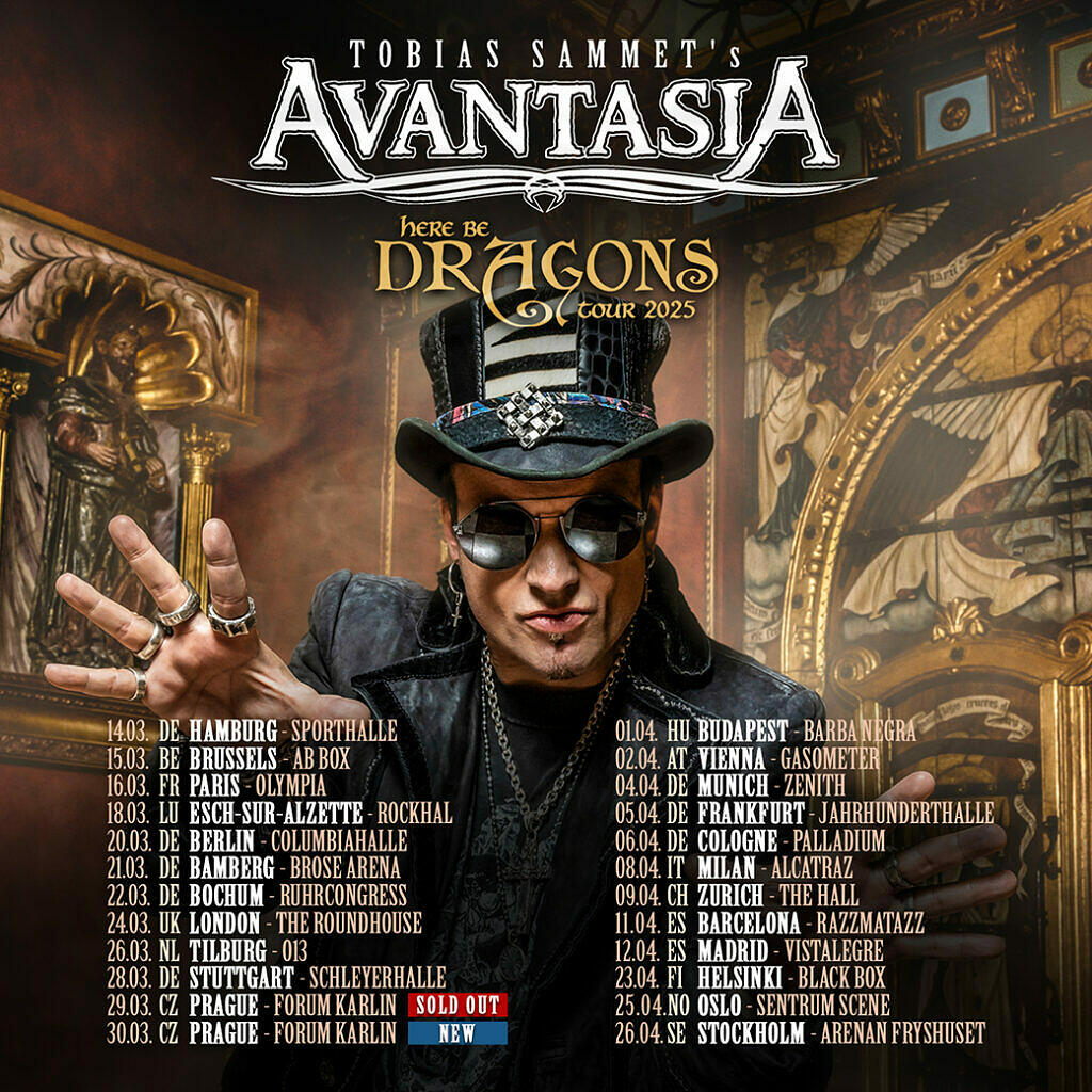 Aktuell bereiten sich Avantasia auf die große „Here Be Dragons“-Headlinetour durch 23 europäische Städte vor. Auftakt ist am 14. März in Hamburg. Die Band wird eine der größten Produktionen der Band-Geschichte dabei haben. Neben großen Band-Klassikern werden auch einige Songs des neuen Nummer 1-Albums das erste Mal live zu sehen sein!