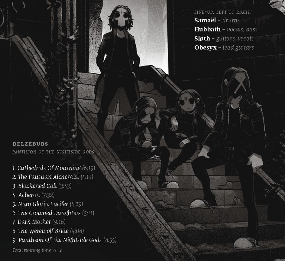 „Unser neuer Drummer Samaël brachte einen tighten, progressiven Dreh in unseren harten, aber melodischen Sound mit ein.“ Als erste Single erschien ‘Blackened Call’, das bis heute über 1,2 Millionen Mal angesehen wurde. Im Oktober ging es für Belzebubs ins Hellhole Studio, Mix und Mastering von PANTHEON OF THE NIGHTSIDE GODS übernahm Dan Swanö.