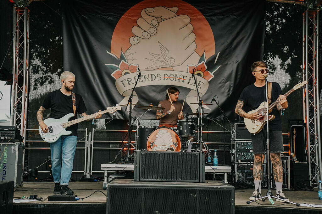 Charley, Anoki und Max Bering und Friends Don’t Lie konnten sich beim ersten „Bühne frei“ Bandcontest gegen die talentierte Konkurrenz durchsetzen. Vor allem für Letztere, die als Pop-Punk-Trio gerade erste Live-Erfahrungen sammeln, war es eine spannende Erfahrung: „Der Gewinn war für uns etwas ganz Besonderes, da wir zwei Wochen zuvor gerade mal unseren ersten Auftritt absolviert hatten. Anschließend dann mit unseren Kindheitshelden wie Pennywise auf dem Reload Festival zu spielen war nicht nur einzigartig, sondern ermöglichte uns auch, mit vielen tollen Menschen aus der Musik- und Festivalbranche zu connecten und unsere Karriere nachhaltig zu pushen. Einfach der beste Start, den man sich als Band vorstellen kann.“