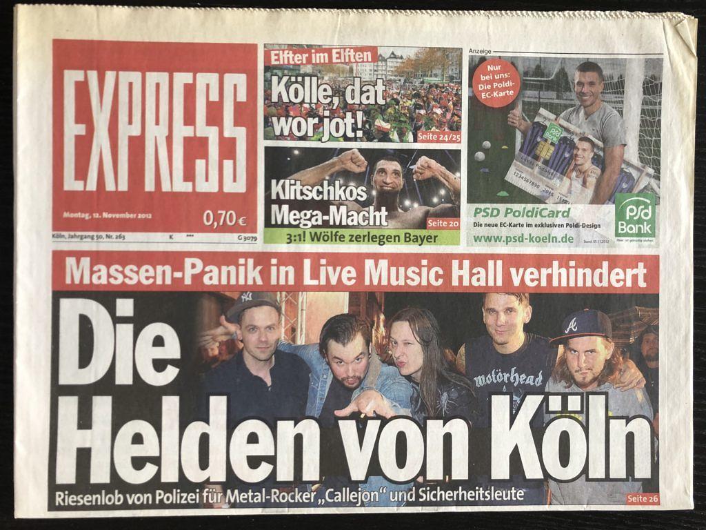 Ende 2012 haben wir es tatsächlich in den Express geschafft, weil auf dem letzten Date der Tour die Deckenverkleidung in der Halle eingestürzt ist. Das war schon ein krasser Schockmoment, und es war ein Riesenglück, dass niemand richtig schwer verletzt wurde.
