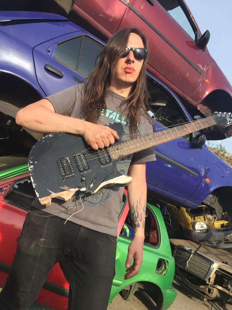 Ein ganz leichter Lackschaden auf der Gitarre während des Drehs zu ‘Ich lehne leidenschaftlich ab’. Das Video haben wir 2015 auf einem Schrottplatz gedreht, und es hat unfassbar Bock gemacht, alles zu zerstören, einzutreten und kaputtzumachen. Am Ende hatten wir selber auch ’ne Menge Schürf- und Schnittwunden, aber das war es wert.