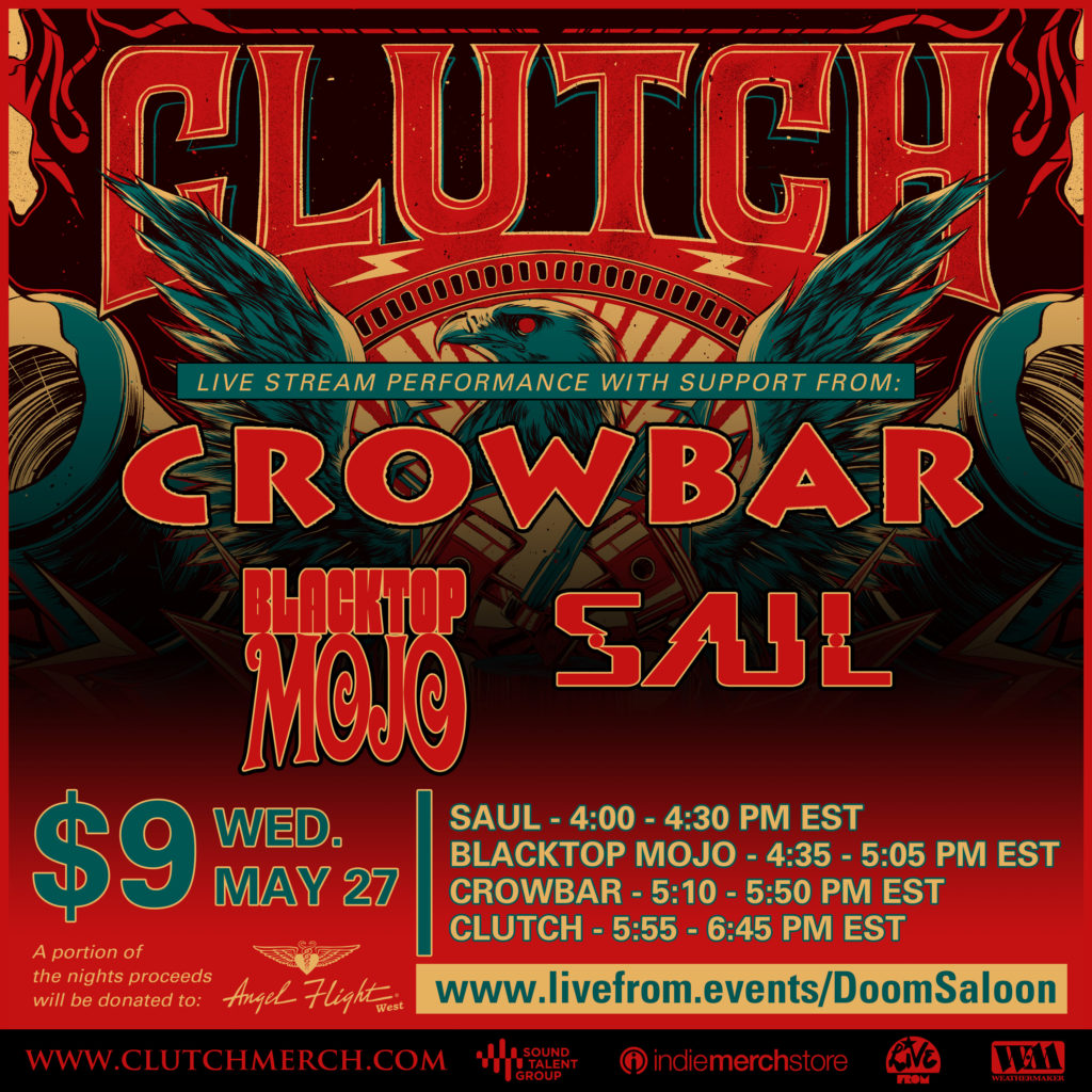 Auch Clutch begeben sich auf das Online-Konzertparkett. Unter dem Titel „Live From The Doom Saloon Volume 1“ werden die US-Rocker am 27. Mai zu sehen sein. Als Supportbands fungieren Crowbar, Blacktop Mojo und Saul. In Produktionskooperation mit Sound Talent Group und LiveFrom Events soll mit neuester Streaming-Technologie die Distanz zwischen Bands und Fans minimiert werden. Ziel ist nichts weniger, als eine fantastische virtuelle Konzerterfahrung zu erschaffen.