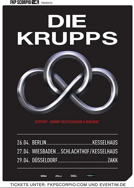 Die drei Die Krupps-Konzerte finden zwischen 26. und 29. April 2018 statt, Support sind Johnny Deathshadow und Barabaz. Tickets unter www.fkpscorpio.com/de/bands-archiv/die-krupps.