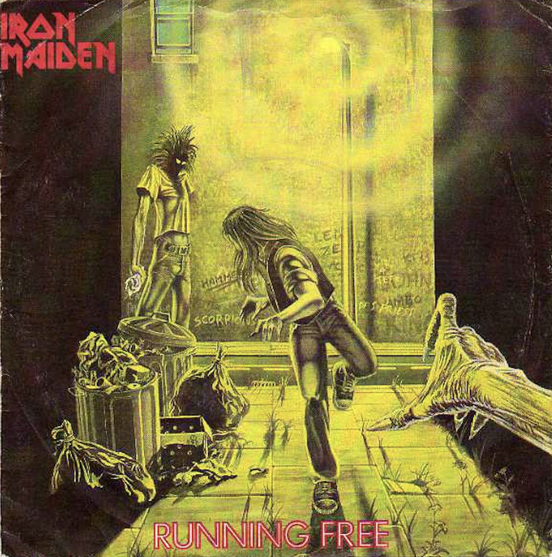 Erstmalig trat Eddie am 8. Februar 1980 in Erscheinung. Vom Rande einer düsteren Gasse blickte er hinterhältig auf sein flüchtendes Opfer. In der Hand hielt er seine Waffe, eine zerbrochene Flasche. Auf dem Cover ihrer ersten Single ‘Running Free’ (1980) lag Eddies Gesicht noch im Schatten. Erst vom zugehörigen Langspieler IRON MAIDEN (1980) starrte er den Betrachtern scheinbar direkt in die Augen – mit irrem Blick. Ursprünglich war Derek Riggs‘ wohl bekannteste Schöpfung für eine Punk-Band bestimmt. So hatte seine erste Skizze – Titel: „Electric Matthew Says Hello“ – noch kürzere Haare. Um der Kultur der Heavy Metal-Szene gerecht zu werden, wurden diese für das Artwork des Albumdebüts kurzerhand verlängert.