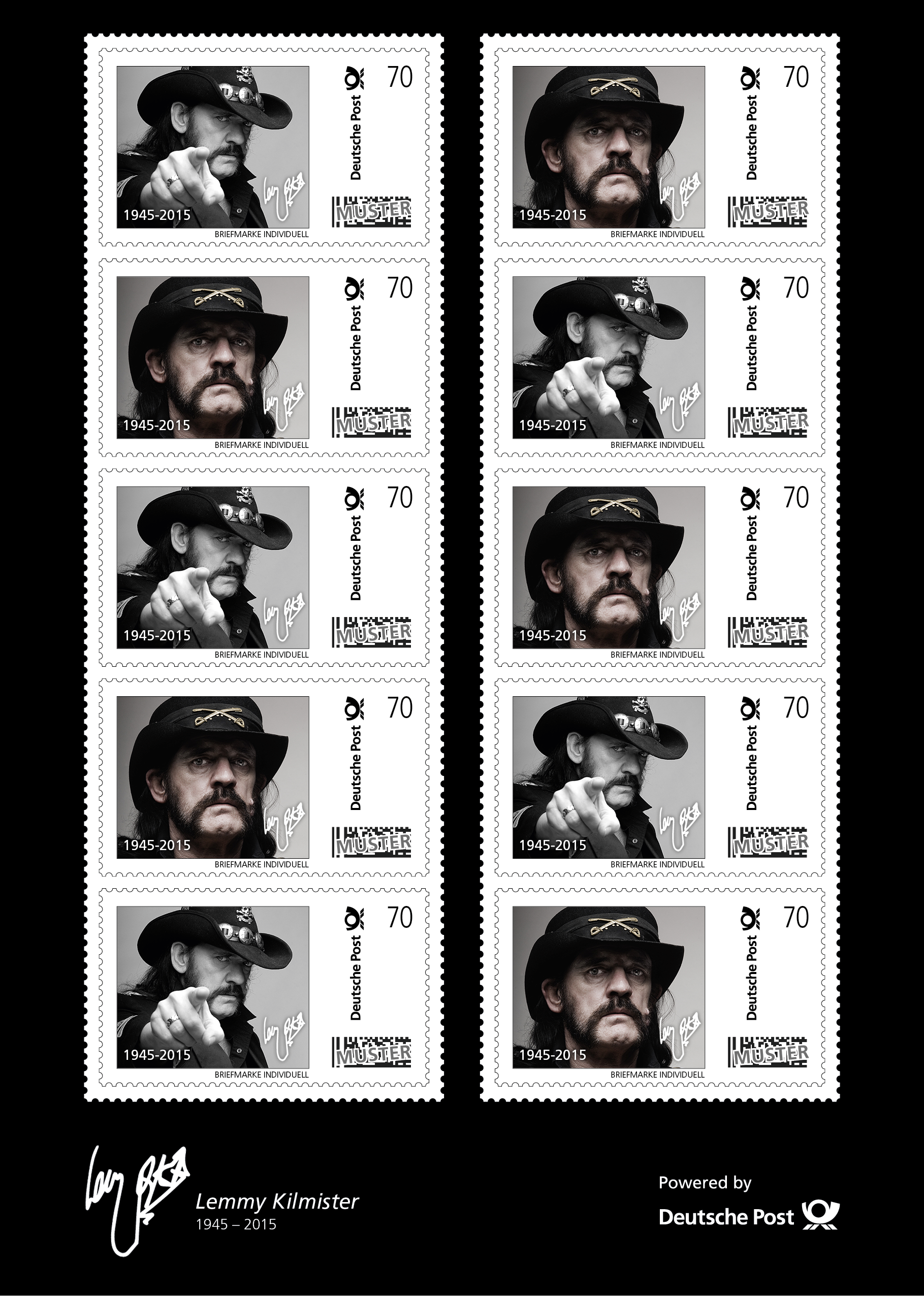 „BILD, in Zusammenarbeit mit der deutschen Post, ehrt den verstorbenen Motörhead Frontmann mit eigenem Briefmarken Set.