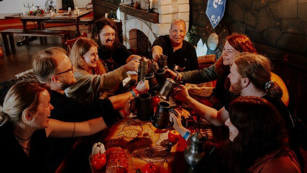 Ein älteres Ehepaar in Nord-Rüstung ein Teenager mit Khajiit-Ohren, ein Kind mit Schwert und Schild – Besucher wie diese füllen die Burg mit Leben. Was 2012 als kleines Community-Treffen im Rahmen der Gamescom begann, hat sich zu einem Großevent entwickelt. Im Jahr 2024 erreichte die ESO-Taverne erstmals die Marke von 1000 Teilnehmern. Vergleichbare Events gibt es auch in anderen Ländern wie Polen oder Australien. Doch keines übertrifft die deutsche ESO-Taverne. Hierzulande gibt es schließlich nach den USA die größte Anzahl an Spielern.
