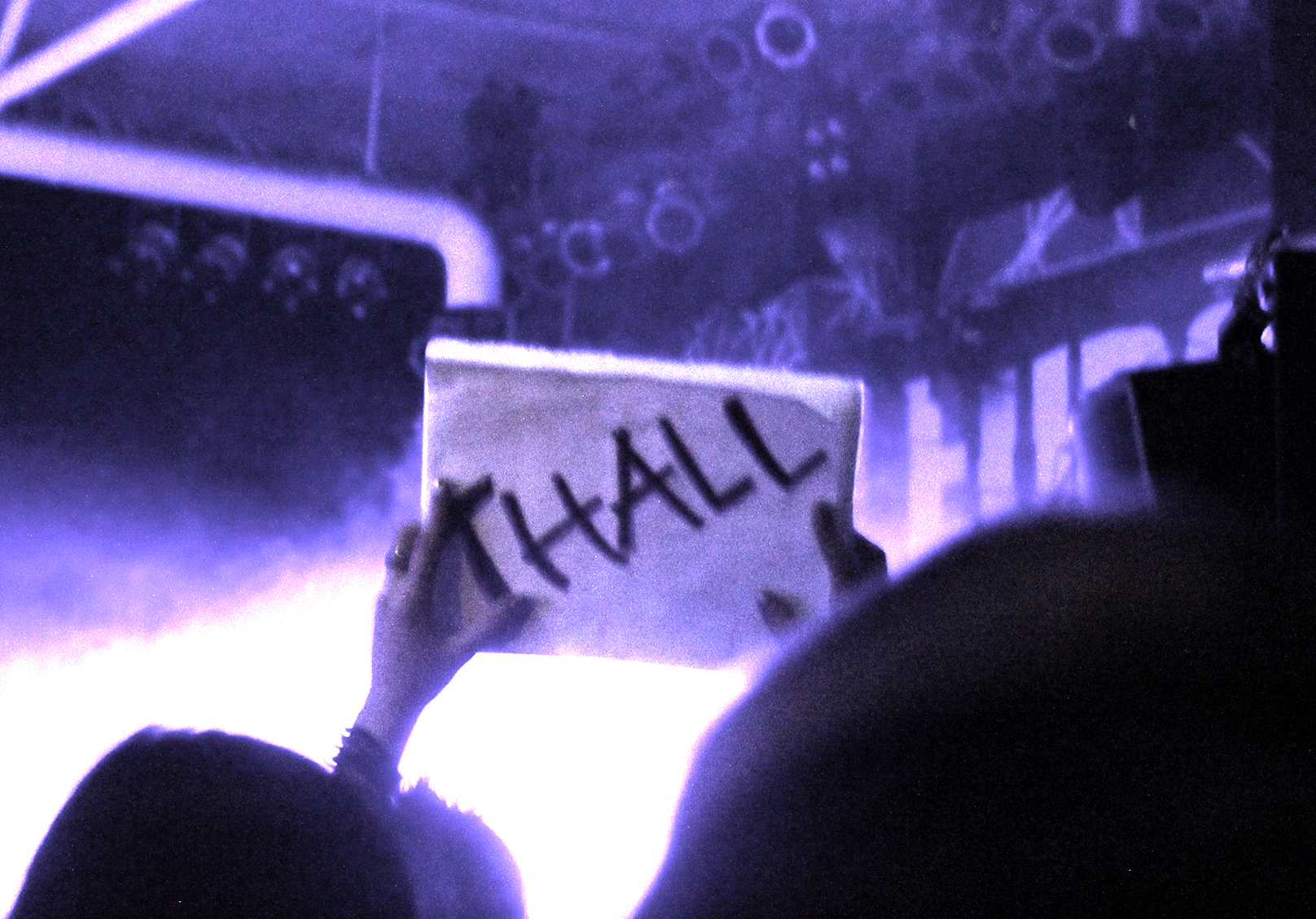 Mit ein bisschen mehr Drama beginnen Vildhjarta, die in diesem Jahr als Headliner auf die Euroblast Bühne zurückkehren und eine exklusive Show spielen. Seit ihrer EP THOUSANDS OF EVIL war es um die schwedische Band sehr ruhig geworden. Mit einem pulsierenden tiefen Ton wird der Raum abgedunkelt und ein Thall*-Schild, was einmal mehr verdeutlicht, dass man im Internet problemlos jede Menge unverständlichen Käse verbreiten kann, ragt in der ersten Reihe in die Höhe bis Vildhjarta mit dem Einsatz staccatösem Geschrammels dem Warten ein Ende setzen.