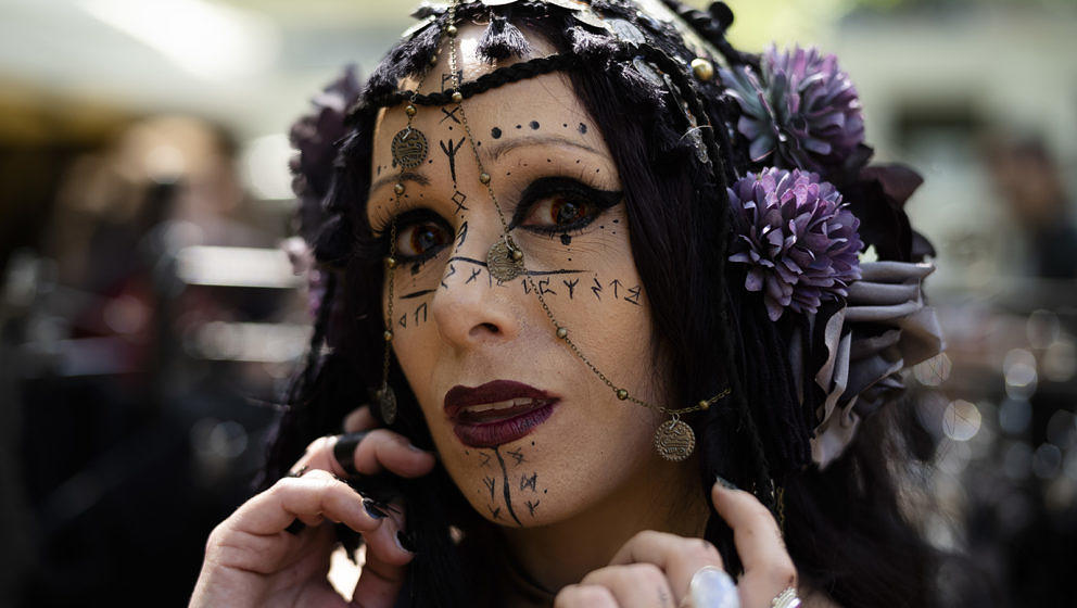 41 von 5408.06.2019, Sachsen, Leipzig: Dunja aus Taunusstein steht im Heidnischen Dorf auf dem Wave-Gotik-Treffen.Foto: picture alliance/dpa, Alexander Prautzsch. All rights reserved. -