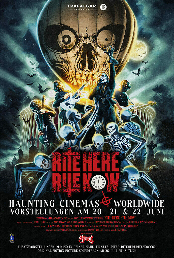 Des Weiteren treten ein paar bekannte Gesichter aus den Story-Videos der Formation auf, die allesamt hinter den Kulissen mit Papa Emeritus IV. interagieren, dessen Zukunft und Schicksal in den Händen des Ministeriums liegt. Darüber hinaus veröffentlichen Ghost gewiss auch einen Soundtrack zu ‘Rite Here Rite Now’. Als Verleih fungiert Trafalgar Releasing. Popecorn Cinematic Pictures zeichnet als Produktionsfirma verantwortlich — mithilfe von Produzenten wie Kristen Mulderig, Rick Sales, Craig Butta und Jonas Åkerlund.