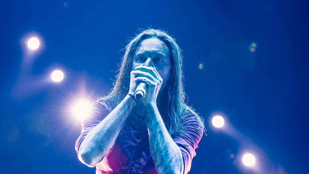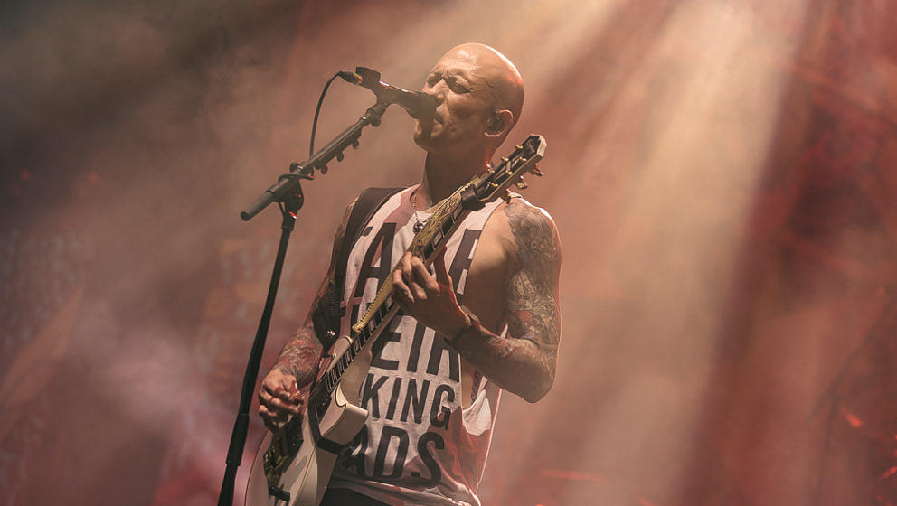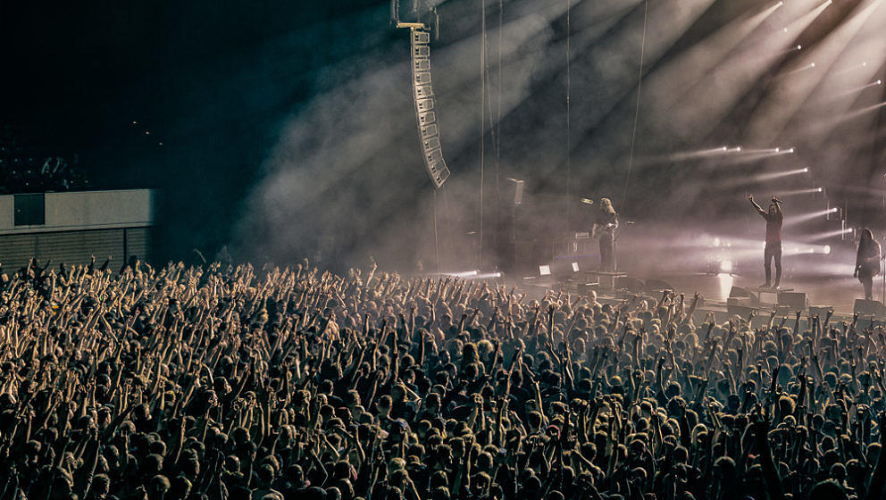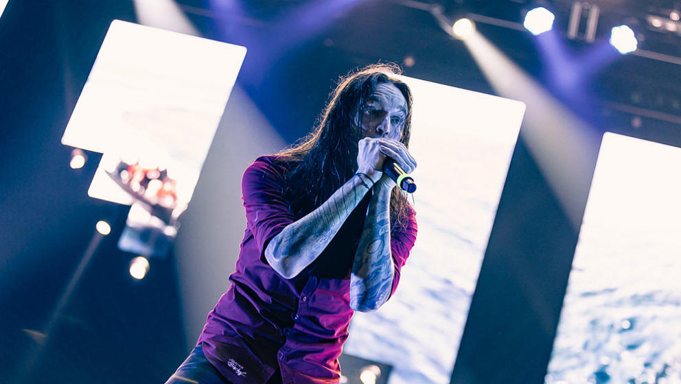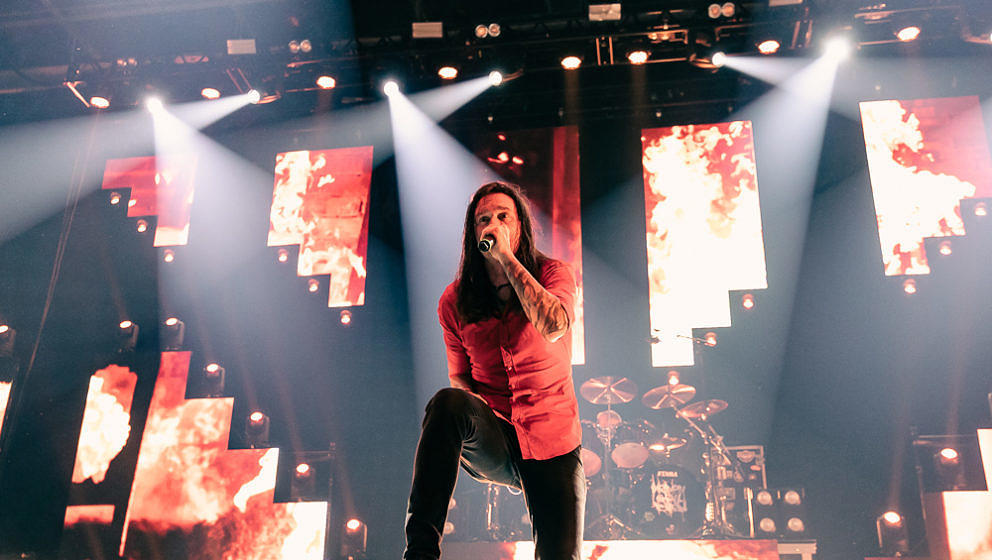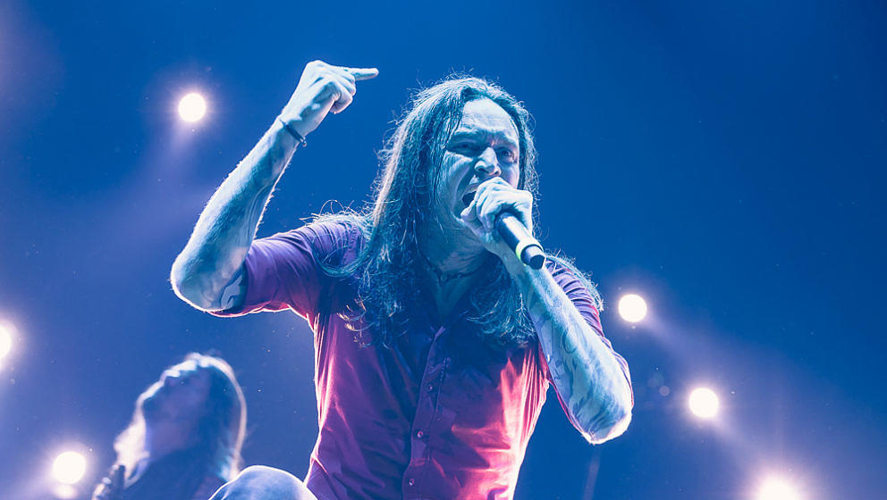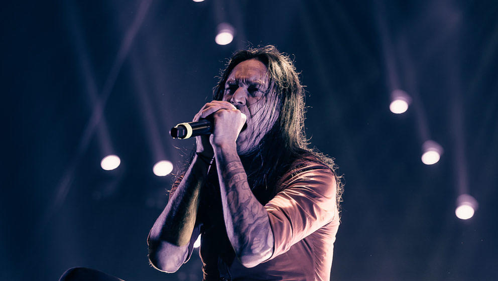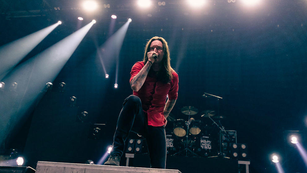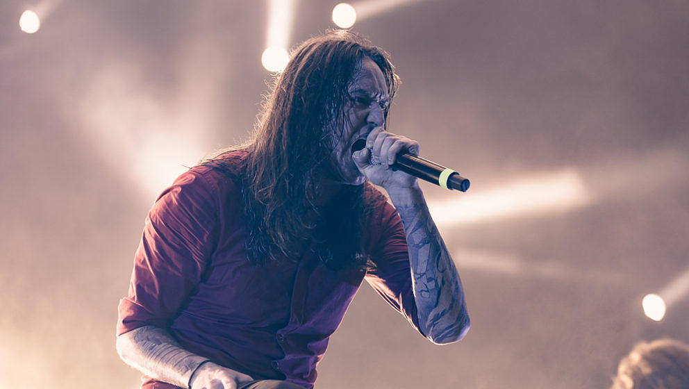 Nachdem die Alsterdorfer Sporthalle nun auf Betriebstemperatur gekommen ist, fehlt nicht viel zum Überkochen der Stimmung. Hierfür treten nun Trivium auf den Plan. Bereits mit dem Einleiten von ‘The End Of Everything’ eskaliert das Publikum extrem schnell und die ersten Crowdsurfer fliegen über die Menge. Ein sichtlich glücklicher Matthew Heafy gibt seine komplette Energie in die Menge und bekommt diese auch gleich zurück. Mit ‘Inception Of The End’ und ‘Like Light To The Flies’ ist dies auch ein leichtes Spiel. Bei letzterem Song gesellt sich sogar noch Josh Baines von Malevolence dazu. Dass Hamburg heute das größte Konzert auf der Tour ist, erwähnt Matthew noch beiläufig und stachelt das Publikum weiter an.0