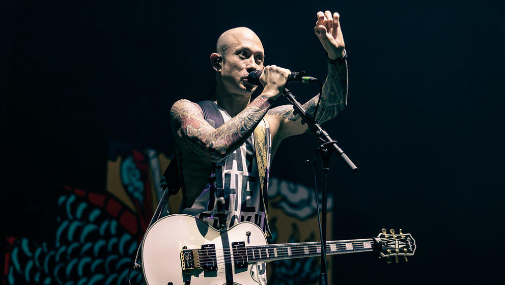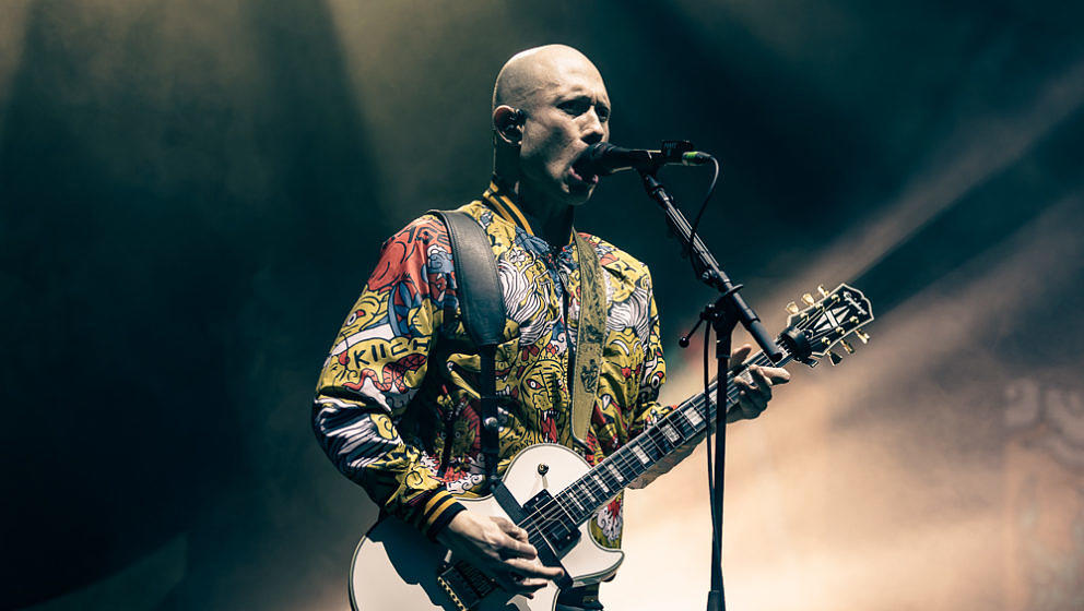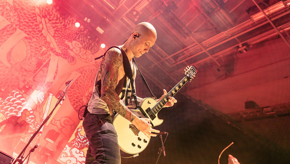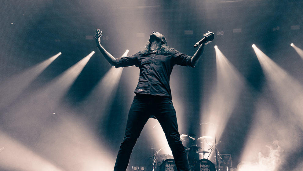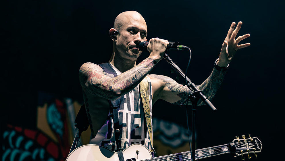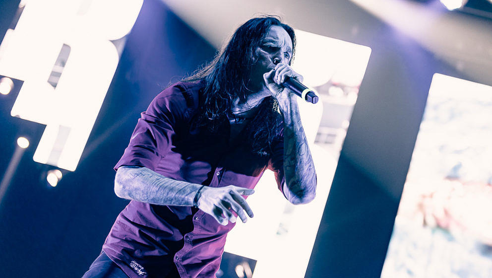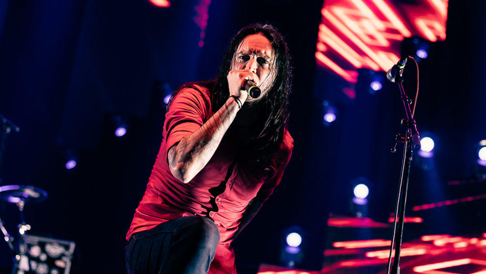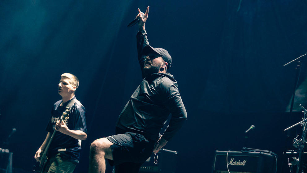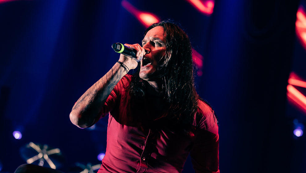 Nachdem die Alsterdorfer Sporthalle nun auf Betriebstemperatur gekommen ist, fehlt nicht viel zum Überkochen der Stimmung. Hierfür treten nun Trivium auf den Plan. Bereits mit dem Einleiten von ‘The End Of Everything’ eskaliert das Publikum extrem schnell und die ersten Crowdsurfer fliegen über die Menge. Ein sichtlich glücklicher Matthew Heafy gibt seine komplette Energie in die Menge und bekommt diese auch gleich zurück. Mit ‘Inception Of The End’ und ‘Like Light To The Flies’ ist dies auch ein leichtes Spiel. Bei letzterem Song gesellt sich sogar noch Josh Baines von Malevolence dazu. Dass Hamburg heute das größte Konzert auf der Tour ist, erwähnt Matthew noch beiläufig und stachelt das Publikum weiter an.0