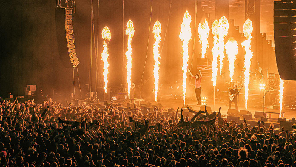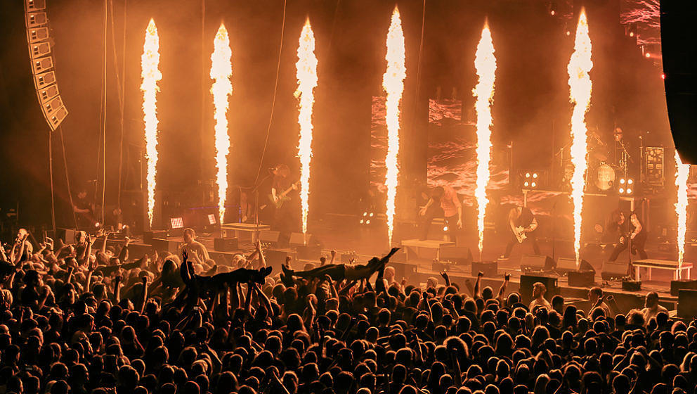 Bei ‘Whatever It May Take’ gesellt sich dann Matthew Heafy auf die Bühne und unterstützt an der Gitarrenfront. Man merkt auch hier wieder die mehrfach erwähnte Freundschaft zwischen den Bands (siehe auch den Schlagabtausch in der aktuellen METAL HAMMER-Ausgabe 03/2023). Die meisten Ansagen sind relativ kurz gehalten, so kann die Band den Druck massiv aufrechterhalten und das Publikum zu einem Circle Pit durch die ganze Halle animieren. Da ist es fast schon schade, als Heaven Shall Burn mit ‘Profane Believers’ und ‘Black Tears’ in das letzte Drittel führen.