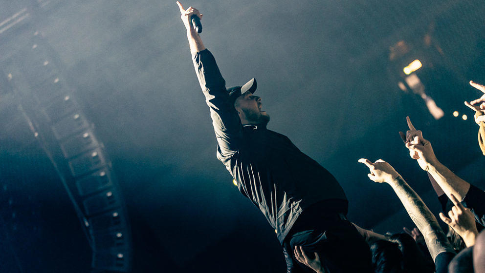 Nach einer kurzen Verschnaufpause geht es weiter mit HSB. Und obwohl der Abend sehr sportlich ist, reden wir natürlich nicht vom Hamburger Sport Bund, sondern von Heaven Shall Burn aus dem zauberhaften Thüringen. Nun werden die letzten Reserven des Publikums benötigt, als die Band mit ‘My Heart And The Ocean’ brachial ihr Set beginnt. Der Druck und die Power sind heute Abend in jeder Faser spürbar, nach ‘Übermacht’ und ‘Voice Of The Voiceless’ ist der Pit bereits mehrmals eskaliert und die Crowdsurfer fliegen munter weiter in den Bühnengraben.
