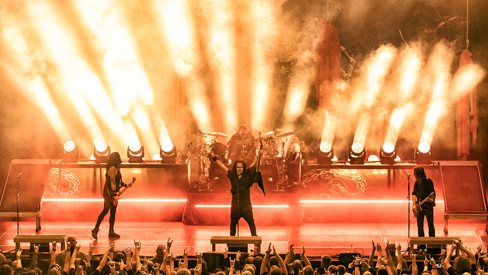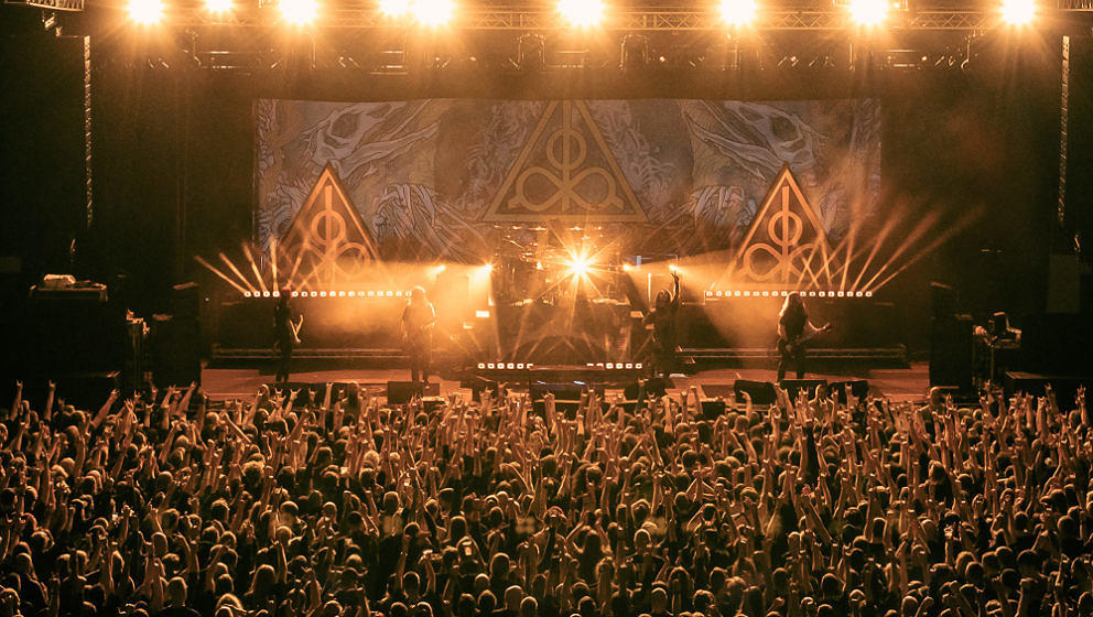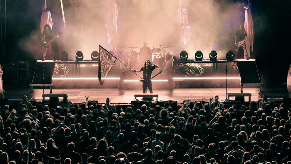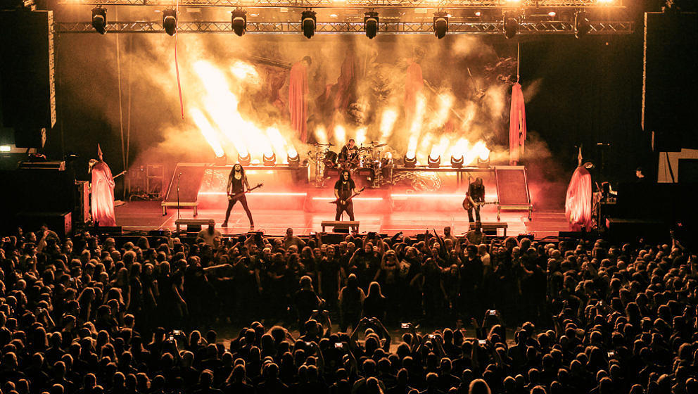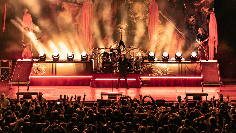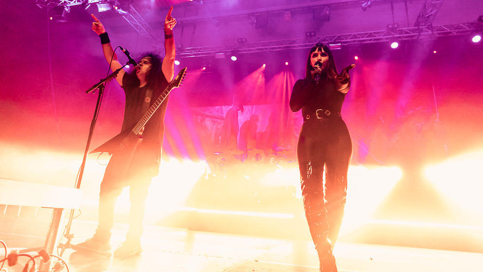 Nun wird es Zeit für die Thrash-Titanen: Kreator starten direkt mit ‘Hate über alles’ in den Abend und zerlegen routiniert das Publikum. Zwar gibt es in Hamburg keine Pyros als Show-Effekte, der druckvolle Sound reicht aber aus, um die richtige Stimmung zu erzeugen. ‘Hail To The Hordes’ wird auch gleich kräftig mitgesungen und mit ‘Enemy Of God’ sowie ‘Phobia’ abgerundet. Zu ‘Midnight Sun’ gesellt sich Sofia Portanet mit auf die Bühne und singt den Song im Duett mit Mille. Solche Extraeinlagen gab es bei Kreator in der Vergangenheit eher selten, es kommt jedoch super an.