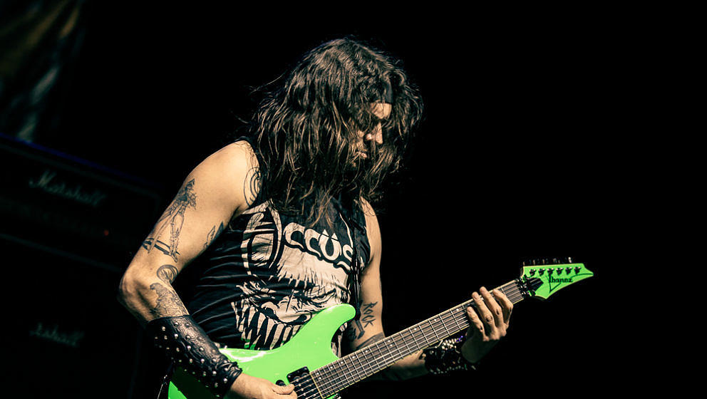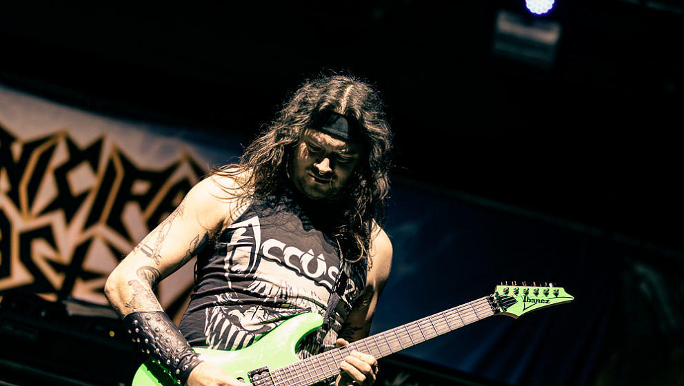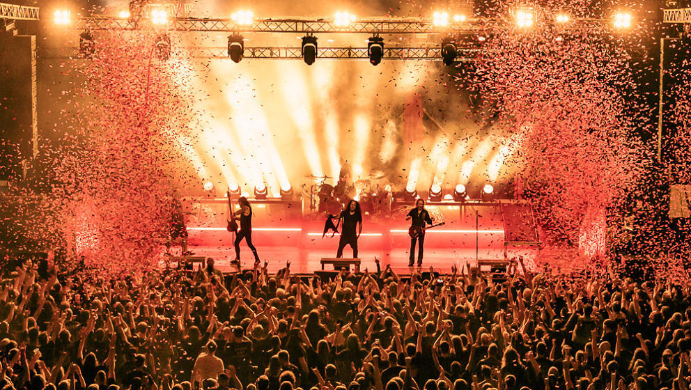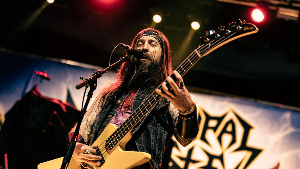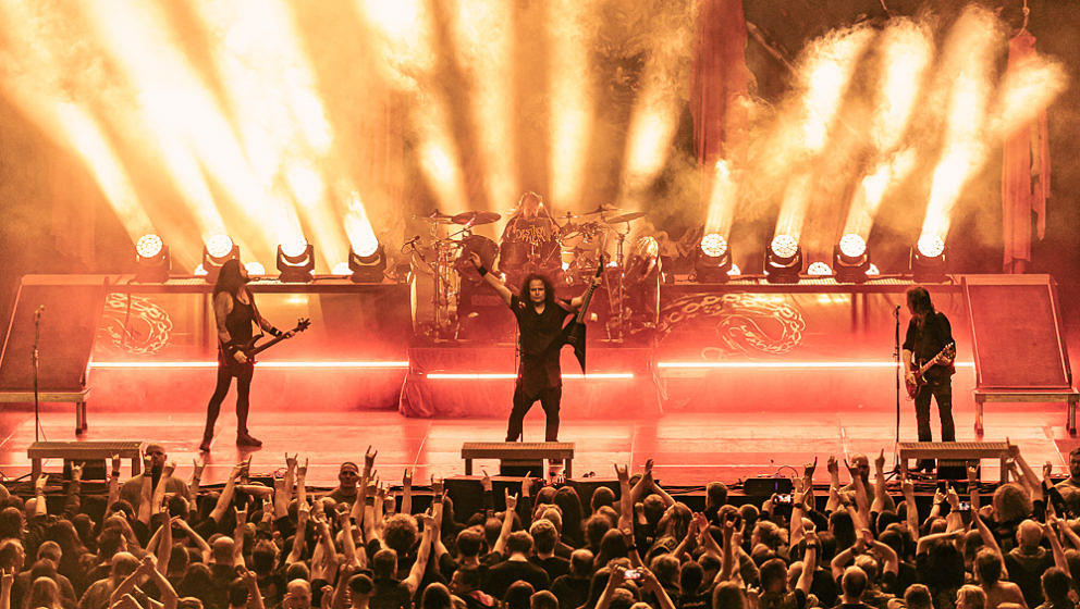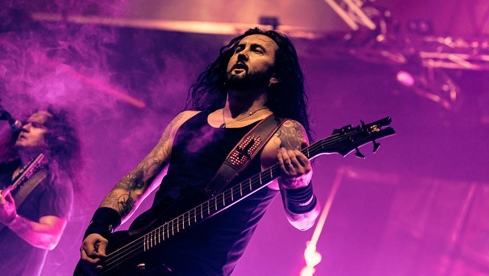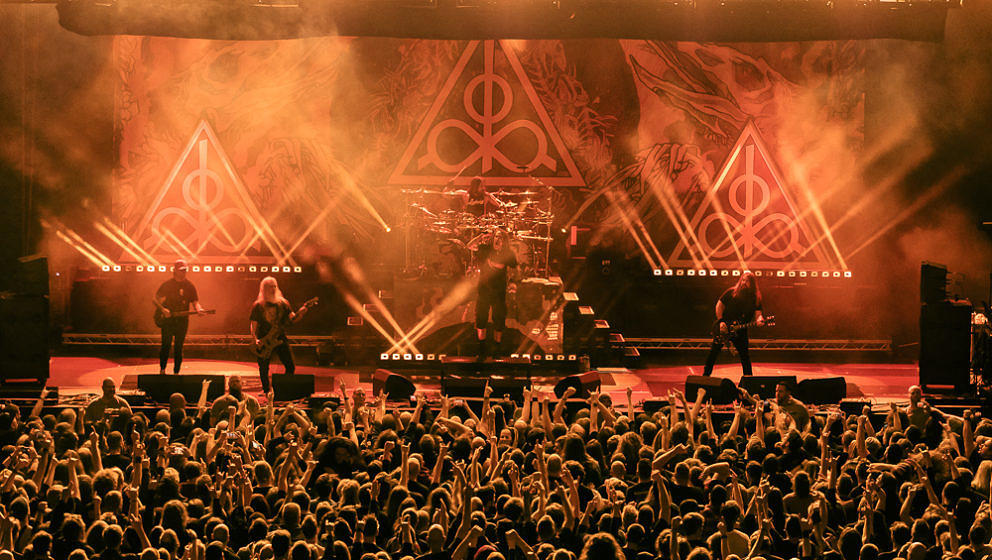 Nun wird es Zeit für die Thrash-Titanen: Kreator starten direkt mit ‘Hate über alles’ in den Abend und zerlegen routiniert das Publikum. Zwar gibt es in Hamburg keine Pyros als Show-Effekte, der druckvolle Sound reicht aber aus, um die richtige Stimmung zu erzeugen. ‘Hail To The Hordes’ wird auch gleich kräftig mitgesungen und mit ‘Enemy Of God’ sowie ‘Phobia’ abgerundet. Zu ‘Midnight Sun’ gesellt sich Sofia Portanet mit auf die Bühne und singt den Song im Duett mit Mille. Solche Extraeinlagen gab es bei Kreator in der Vergangenheit eher selten, es kommt jedoch super an.