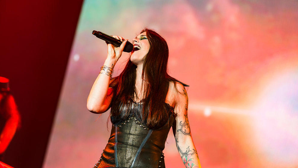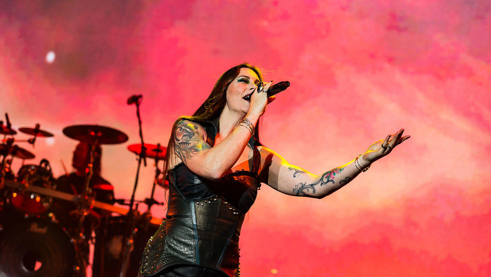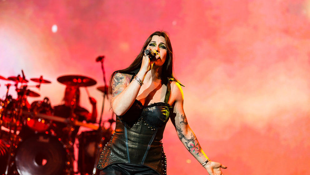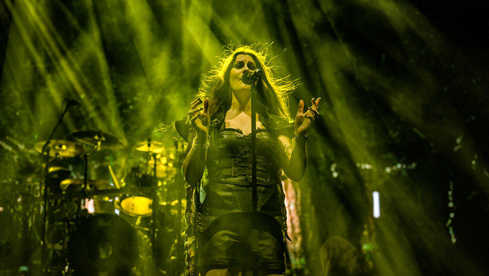 Nightwish kündigen sich nach der Umbaupause mit einem Geschichtserzähler an, der dann zum Ende des Intros noch einmal darauf hinweist, doch einfach mal die Handys stecken zu lassen und mit der Band dem Alltag zu entfliehen. Ein Großteil des Publikums befolgt dies gerne und wird bei den ersten Tönen von ‘Dark Chest Of Wonders’ oder ‘Wish I Had An Angel’ von den Pyros weggegrillt. Der Sound macht zudem Druck und kann durch seine Klarheit überzeugen, sehr interessant kommen auch die in dieser Konstellation noch nie gespielten Songs rüber.