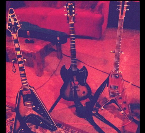Wie es sich gehört, lassen Mastodon ihre Fans auch an der Aufnahme-Session teilhaben. Erstmal mit Bildern aus dem Studio, die sie über ihre Website veröffentlichen. Auf einem ist ein illustrer Gast zu sehen, Gitarre über den Latz geschnallt: Dave Grohl von den Foo Fighters (siehe Bild 2, oben).