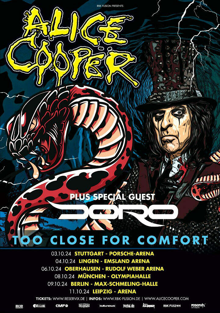 Cooper, der in die Rock And Roll Hall Of Fame aufgenommen wurde, ist in der Regel bis zu sechs Monate im Jahr unterwegs, um seine spektakuläre Bühnen-Show alten und neuen Fans zu präsentieren, wobei er die Bühnenauftritte ebenso genießt wie das Publikum. Als Erfinder des Schock-Rock überrascht Cooper mit seiner fulminanten Bühnen-Show seine Fans immer wieder aufs Neue – wie in einem guten Horrorfilm.Das Album ROAD, welches am 25. August 2023 über earMUSIC erschienen ist, wurde von Bob Ezrin produziert und mit seiner aktuellen Touringband geschrieben, komponiert und aufgenommen. Mit zwölf neuen Rock’n’Roll-Songs und einem Cover von The Who schließt es den Kreis zwischen seinen insgesamt 29 Studioalben und erfüllt alles, was man sich von einem klassischen Cooper-Album erhofft. Dieses Mal sind seine langjährigen Band-Kollegen – Ryan Roxie (Gitarre), Chuck Garric (Bass), Tommy Henriksen (Gitarre), Glen Sobel (Schlagzeug) und Nita Strauss (Gitarre) – mit von der Partie.