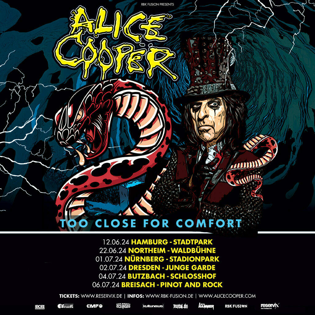 Cooper, der in die Rock And Roll Hall Of Fame aufgenommen wurde, ist in der Regel bis zu sechs Monate im Jahr unterwegs, um seine spektakuläre Bühnen-Show alten und neuen Fans zu präsentieren, wobei er die Bühnenauftritte ebenso genießt wie das Publikum. Als Erfinder des Schock-Rock überrascht Cooper mit seiner fulminanten Bühnen-Show seine Fans immer wieder aufs Neue – wie in einem guten Horrorfilm.Das Album ROAD, welches am 25. August 2023 über earMUSIC erschienen ist, wurde von Bob Ezrin produziert und mit seiner aktuellen Touringband geschrieben, komponiert und aufgenommen. Mit zwölf neuen Rock’n’Roll-Songs und einem Cover von The Who schließt es den Kreis zwischen seinen insgesamt 29 Studioalben und erfüllt alles, was man sich von einem klassischen Cooper-Album erhofft. Dieses Mal sind seine langjährigen Band-Kollegen – Ryan Roxie (Gitarre), Chuck Garric (Bass), Tommy Henriksen (Gitarre), Glen Sobel (Schlagzeug) und Nita Strauss (Gitarre) – mit von der Partie.
