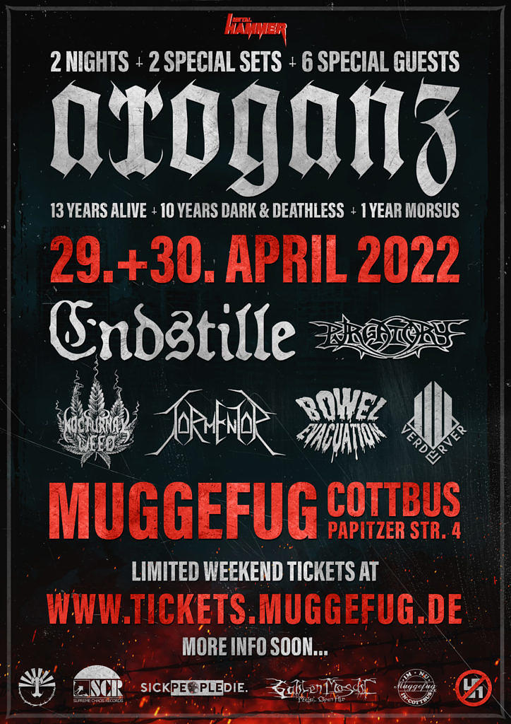 Seit 2008 heißt es bei und für Arroganz: Leck-mich-Attitüde zum Gernhaben. „Real despair. True anger. An attitude beyond „fuck off“. A pure will for freedom.“ Frei von Klischees und straight forward Death Metal mit Black Metal-Anteilen und obskuren Doom-Passagen. 2017 erschien das vierte Album PRIMITIV.