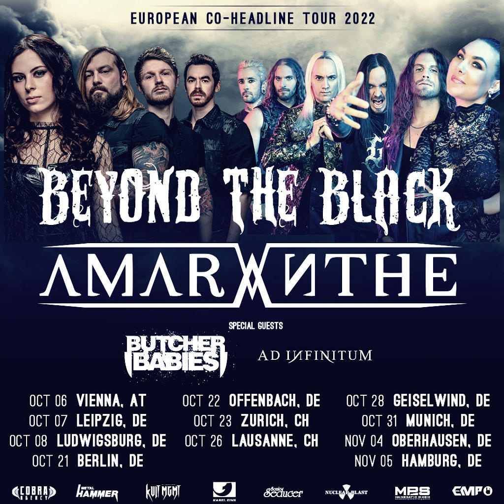 Zusammen mit den neuen Terminen kündigen Amaranthe und Beyond The Black ebenfalls das komplette Line-up an: Die beiden Bands teilen sich die Bühne mit Butcher Babies und Ad Infinitum, die dem Publikum als Supportacts einheizen werden.