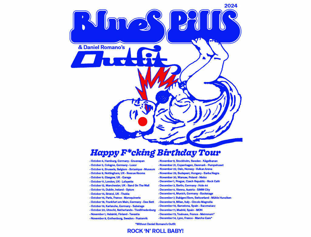 Um die Tournee zu etwas Besonderem zu machen, setzen Blues Pills diesmal ganz bewusst auf kleinere Venues, um mehr Nähe zu den Fans herzustellen. Als Special Guest wird die kanadische Rock’n’Roll-Band Daniel Romano’s Outfit die Shows eröffnen. „Wir sind zutiefst enthusiastisch darüber, mit unserer ,Happy F*cking Birthday‘-Tour loszulegen“, so Elin Larsson, Sängerin von Blues Pills. „Mit dieser Tour feiern wir nicht nur unsere geteilte Liebe zur Musik, sondern auch unsere Fans, unsere Reise als Band sowie die unglaublichen Erfahrungen, die wir machen durften.“