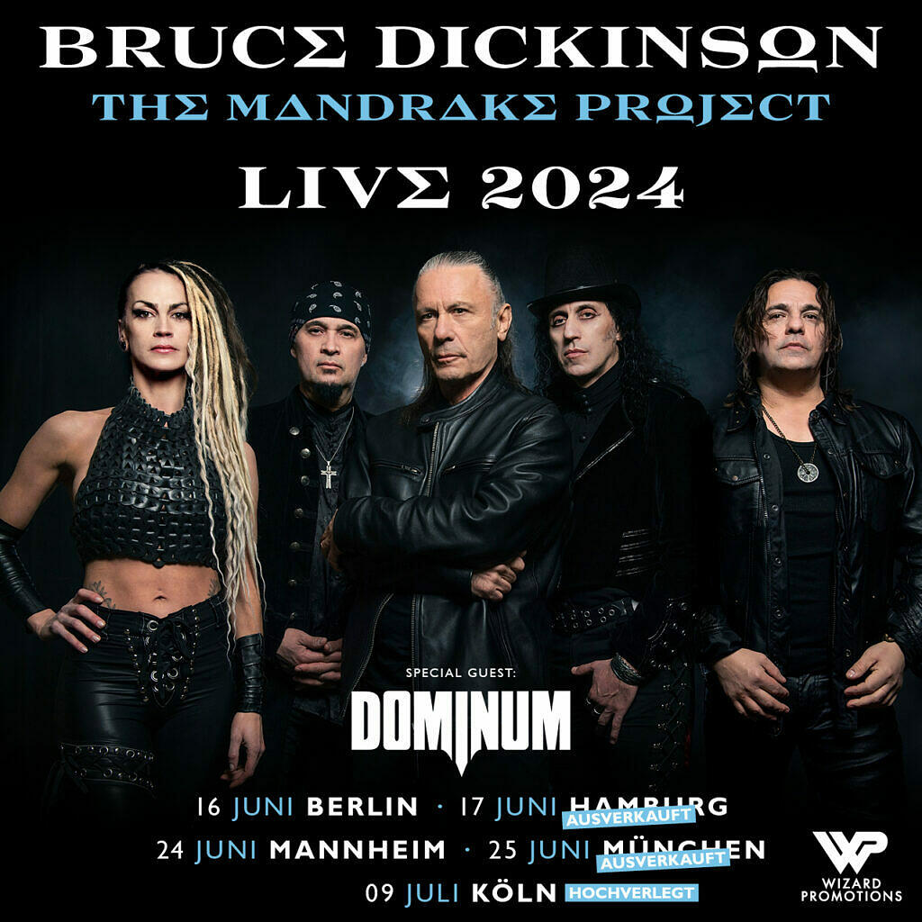 Nach dem Release seines neuen Soloalbums THE MANDRAKE PROJECT (01.03.2024) kommt Bruce Dickinson für fünf Termine mit Dominum nach Deutschland.