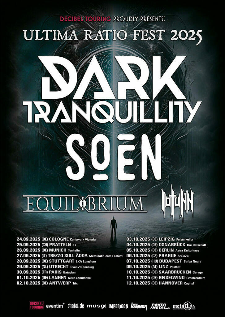 Das Jahr 2025 wird mit einem epischen Knall enden, wenn die Melodic-Metal-Veteranen Dark Tranquillity gemeinsam mit Soen, Equilibrium und Iotunn ihre eindrucksvolle musikalische Magie über Europa entfesseln! In insgesamt 19 Shows in 10 Ländern habt ihr die Chance, dieses gewaltige Spektakel live zu erleben.