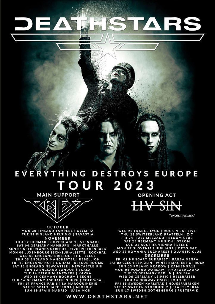 🛒 EVERYTHING DESTROYS YOU bei AmazonNun sind die passenden Tourdaten für Europa bekanntgegeben worden. Deathstars kommen im Herbst/Winter für diverse Konzerte aufs Festland und wollen mit ihrem „Skandinavischen Deathglam“ die Massen begeistern.