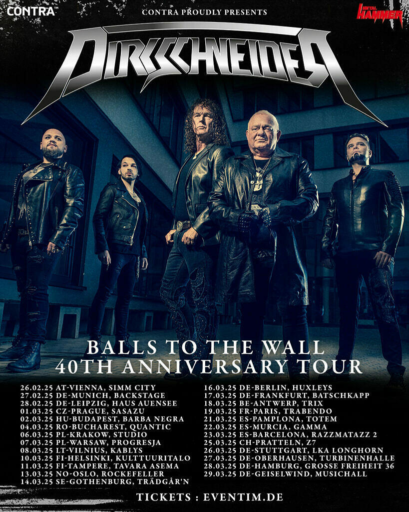 Das Motto „Balls to the wall“ („mit aller Kraft“) trifft definitiv auch auf die aktuelle Dirkschneider-Besetzung zu, der zudem Sven Dirkschneider sowie die Gitarristen Andrey Smirnov und Fabian „Dee“ Dammers angehören. Umso passender, dass kürzlich das 40. Jubiläum des ursprünglich Ende 1983 veröffentlichten und zudem meistverkauften und bekanntesten Accept-Studioalbums mitten in die vorherrschende Hochphase der Truppe fiel. So möchte die Band es sich natürlich nicht nehmen lassen, die gesamte Platte live zum Besten zu geben, um deren Ehrentag nachträglich zu feiern – und das alles auf Tourneelänge im Frühjahr 2025!