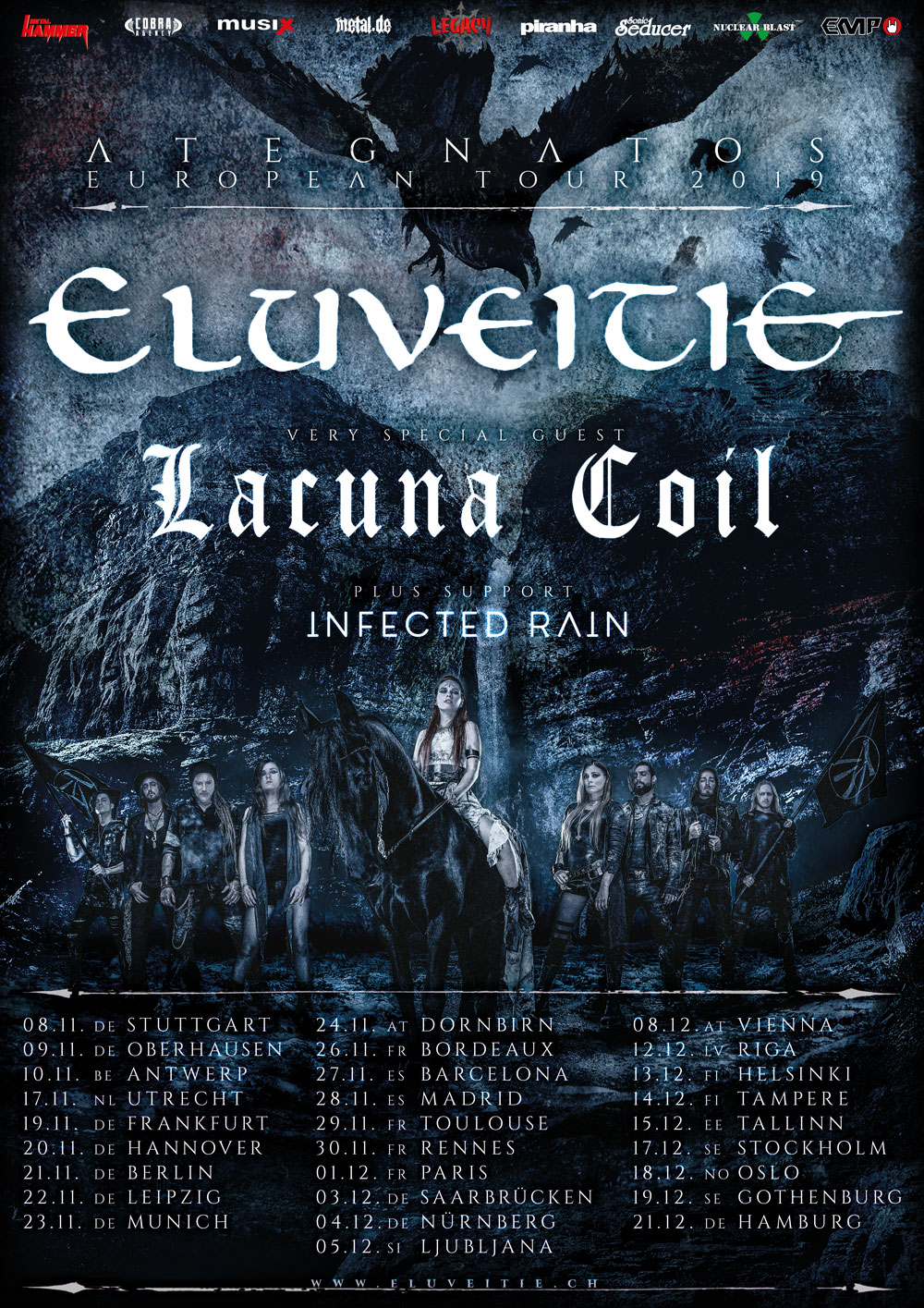 Lena von Infected Rain meint dazu: „2019 ist sehr vielversprechend für Infected Rain! Viele neue Release, neue Kontakte und neue Orte. Wir sind über all das ziemlich aufgeregt und besonders wegen der Tour im Herbst, die das perfekte Ende für dieses Jahr sein wird. Wir werden der Support für zwei geniale Bands und großartige Leute sein für mehr als 40 Shows in Europa. Es ist eine Ehre, die Bühne mit Eluveitie und Lacuna Coil zu teilen.“