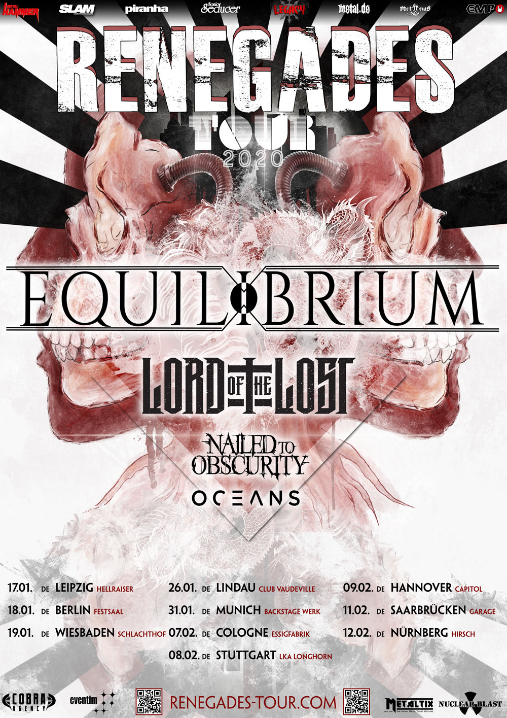 „Wir können es kaum erwarten, wieder auf Tour zu gehen, um unsere Musik und die dahinterstehende Botschaft in diesen schönen Ländern zu verbreiten. Wir sind sehr stolz darauf, Lord Of The Lost, Nailed To Obscurity und Oceans für diese Tournee an Bord zu haben. Alle diese Bands sind einzigartig und wir denken, dass dieses Package eine ganz besondere Tour garantieren wird, die ihr nicht verpassen solltet!“ (Equilibrium)