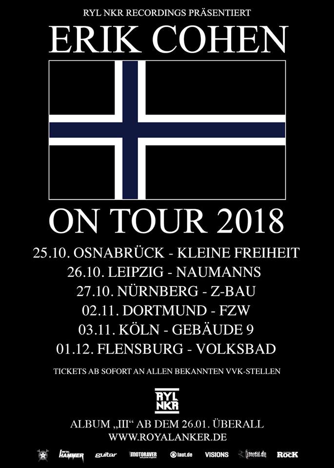 Nach seiner Tournee durch Deutschland Anfang des Jahres zieht Erik Cohen ab Oktober weiter durch die Konzertsäle. METAL HAMMER präsentiert natürlich!