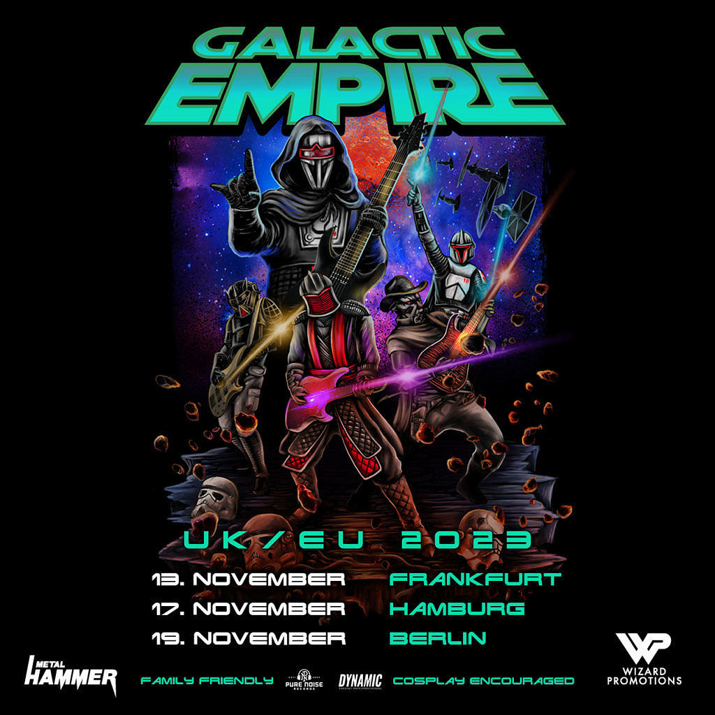 Lang lebe das Imperium – Galactic Empire, um genau zu sein. Die beliebteste Metal-Band der Galaxis hat am 5. Mai ihr drittes Studioalbum via Pure Noise Records veröffentlicht und kündigt nun folgerichtig ihre Rückkehr nach Deutschland an. Galactic Empire bringen ihre unaufhaltsame Kraft im November 2023 nach Frankfurt (13.11.), Hamburg (17.11.) und Berlin (19.11.). Tickets für die drei Konzerte sind ab Freitag, den 9. Juni ab 11.00 Uhr im Vorverkauf erhältlich.