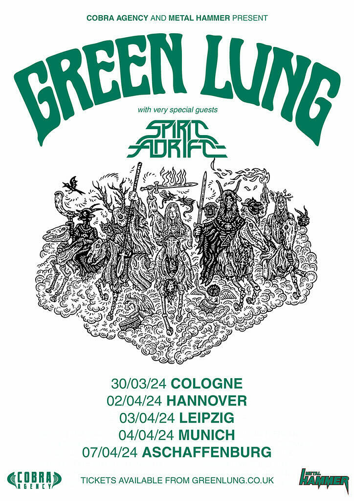 Als Kult-Band im wahrsten Sinne des Wortes sind Green Lung schnell an die Spitze der britischen Metalszene aufgestiegen und beschwören den wilden und hexenhaften Geist des britischen Okkult-Rock für eine neue Generation. Die reichhaltige Mischung aus Proto Metal und Doom-lastigem Hard Rock, durchdrungen von unverkennbar britischer Folklore, hat sich auf ihrer Debüt-EP FREE THE WITCH (2018) und den beiden von der Kritik gelobten Alben WOODLAND RITES (2019) und BLACK HARVEST (2021) als monumentaler Hit erwiesen.