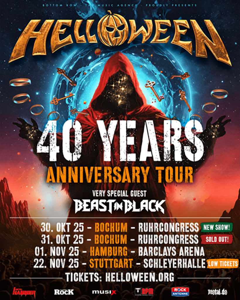 Mit diesen Highlights im Regal gehen HELLOWEEN in ihr Jubiläumsjahr und zelebrieren 40 Jahre Band- und Metal-Geschichte. Während Andi Deris, Michael Kiske, Michael Weikath, Kai Hansen, Markus Grosskopf, Sascha Gerstner und Dani Löble intensiv am Nachfolger des sensationellen Reunion-Albums arbeiten, kündigen sie parallel eine Jubiläumstourtnee der Superlative an, wie Bassist und Gründungsmitglied Markus Grosskopf erklärt: „Wir haben uns einige großartige Überraschungen für die Fans überlegt und werden neben den brandneuen Songs, die zum ersten Mal live auf die Bretter kommen, auch Tracks aus der Band-Historie spielen, die man sehr lange nicht mehr oder sogar noch nie live gehört hat. Die Shows werden für uns alle ein fantastisches Erlebnis werden!“
