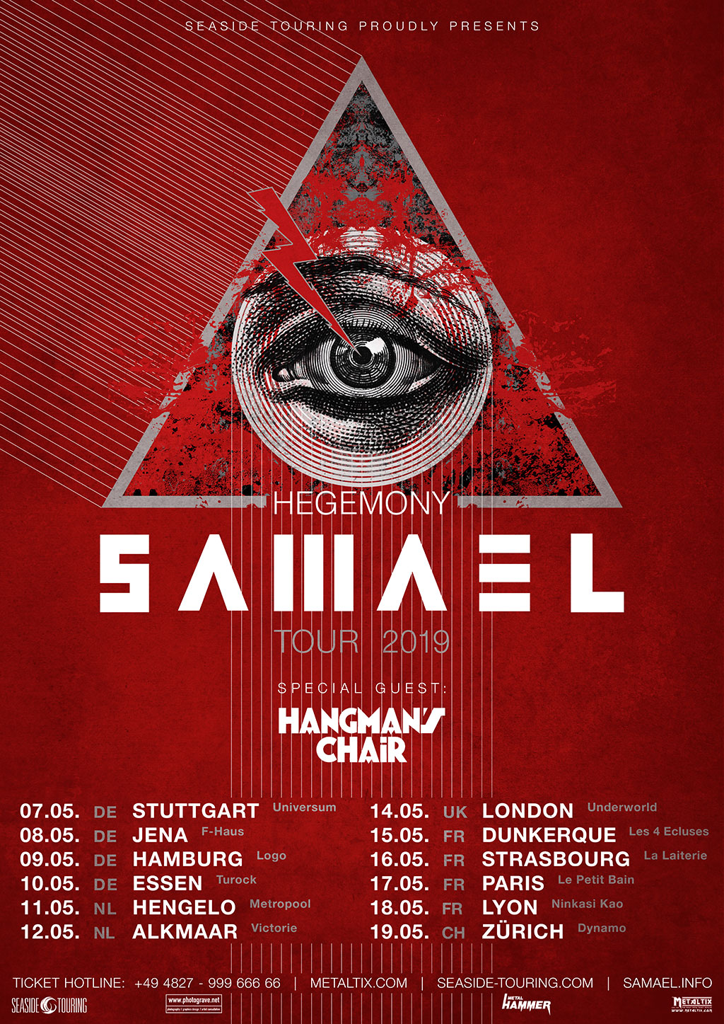 Im April 2018 verkündete die Band den Abschied von Gitarrist Makro, woraufhin Bassist Drop seine Rolle als Gitarrist übernahm und mit Zorac als neues Mitglied drei Monate darauf der freie Bassistenplatz erneut besetzt wurde. Nachdem Samael im aktuellen Line Up dieses Jahr bereits die Bühne des Wacken Open Air und des Neuborn Open Air bespielten, kommt die Band im Mai 2019 auch für ein paar Clubkonzerte zu Besuch.