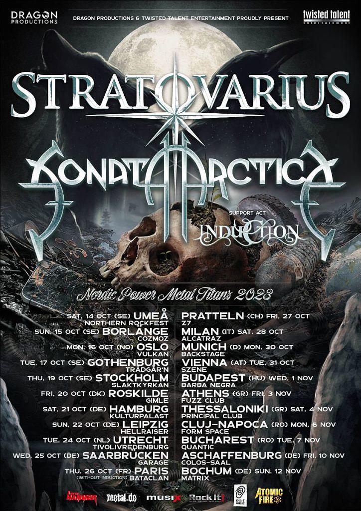 Stratovarius kommentieren: „Wir können es kaum erwarten, diese Tour gemeinsam mit Sonata Arctica und Induction zu spielen. 2000 waren wir ebenfalls mit Sonata Arctica und Rhapsody unterwegs, als die ,New Wave Of Power Metal‘ gerade erst ins Rollen gekommen war, weshalb die kommenden Shows eine klasse Möglichkeit bieten, um zu zeigen, dass Power Metal nach wie vor eine wichtige Rolle in der Heavy-Metal-Welt spielt und wie er sich über all die Jahre weiterentwickelt und angepasst, jedoch auch wie er letztendlich überlebt hat!“