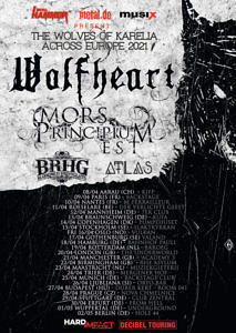 [Update vom 26.02.2021:] Die gemeinsame Tournee von Wolfheart, Mors Principium Est, Bloodred Hourglass und Atlas muss Corona-bedingt abgesagt werden (Termine siehe unten). Die „The Wolves Of Karelia Across Europe Tour“ wird auch erst einmal nicht neu angesetzt. Wolfheart-Frontmann Tuomas Saukkonen schreibt hierzu: