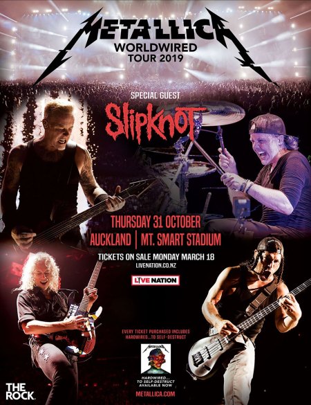 Aktuell befinden sich Metallica seit 2016 auf ihrer „WorldWired“-Tournee, im Rahmen derer sie bislang über 130 Shows absolviert haben. Neun Jahre nach ihrem letzten Auftritt in Neuseeland ist für Oktober 2019 wieder eine Reise durch Ozeanien geplant, mit dabei als Special Guest sind Slipknot.
