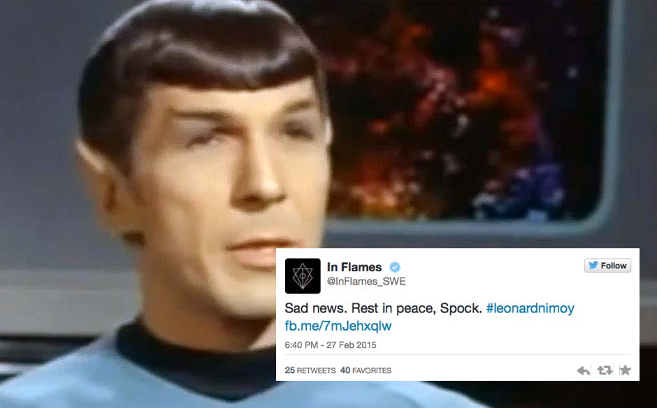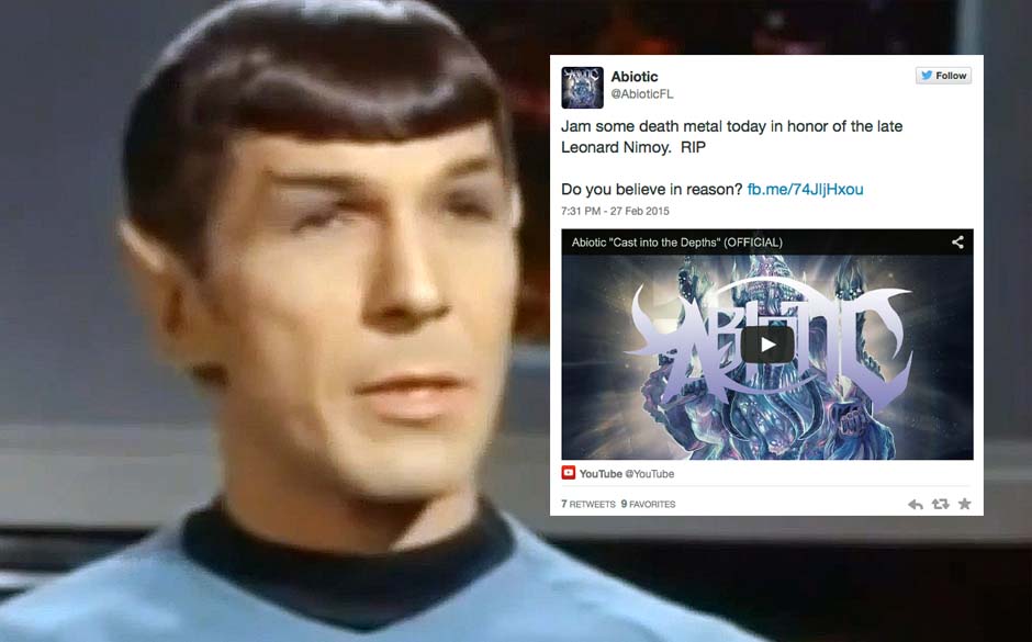 Diverse Metal-Bands und –Musiker trauern um den verstorbenen Schauspieler Leonard Nimoy, allgemein bekanntgeworden als Vulkanier Mr. Spock.