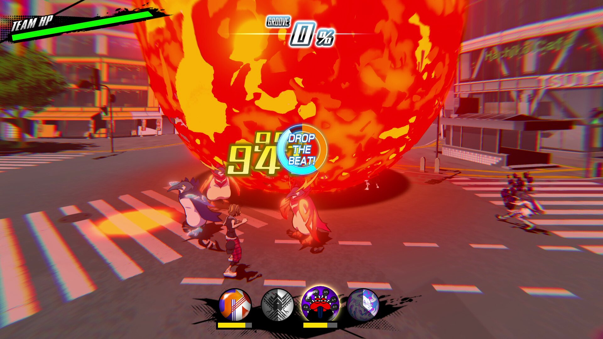 Eines muss man ‘NEO: The World Ends With You’ definitiv lassen: Square Enix setzt hier auf eine überraschend unkonventionelle Steuerung. Kommt es in der Parallelwelt des Reaper-Games zum Kampf, könnt ihr per Knopfdruck eure Charaktere Angriffe durchführen lassen. Diese sind davon abhängig, mit welchem „Pin“ – kleinen Buttons, die ihr im Laufe des Spielverlaufs findet und die über die Angriffe eurer Teammitglieder entscheiden – eure Mitstreiter ausgerüstet sind.
