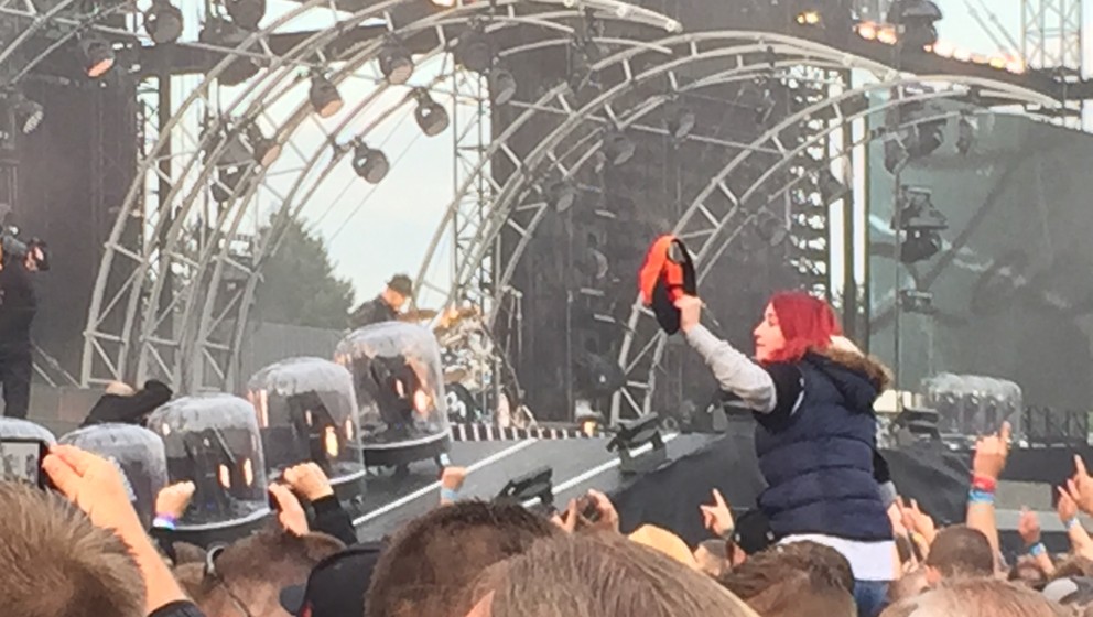 Einiges ist anders als bei den Comeback-Konzerten: Kein Orchester, keine Gäste, mit In Extremo nur einer Vorband, die schnell zeigt, dass sie perfekt für die Böhsen Onkelz eröffnen kann (und das bei den Abschiedskonzerten vor 10 Jahren auch schon getan hat). Die größte der Bühne der Welt sorgt für mehr Fan-Nähe als im Vorjahr: Der Steg in der Bühnenmitte fehlt, die Band spielt 3,5 Stunden frontal auf das Publikum zu. Eine pure Rock-Show in gigantisch!